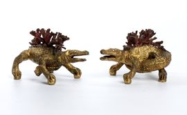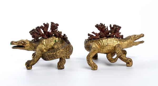 raffiguranti coccodrilli, fusi in bronzo. Sono caratterizzati da una superficie finemente lavorata a rendere le squame e la tensione del corpo rettile. Lungo il dorso, in posizione apicale, sono applicati rami di corallo. Concepiti come oggetti da tavolo o cabinet Wunderkammern.