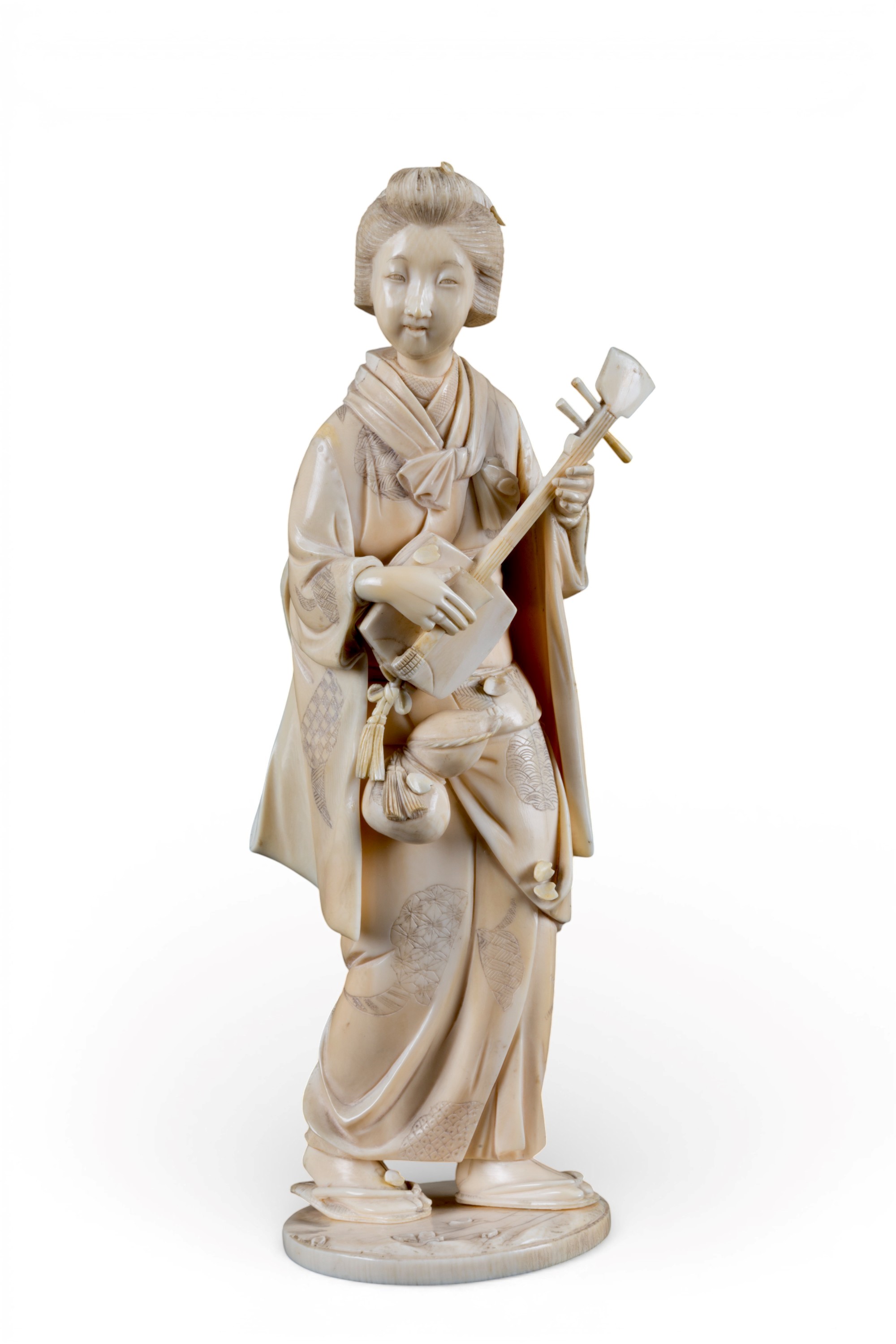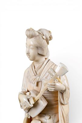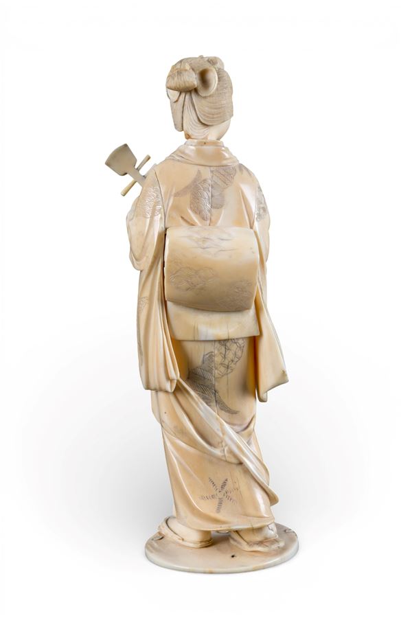 di elefante (Elephas maximus Linnaeus, 1758 o Loxodonta africana Blumenbach, 1797) raffigurante una suonatrice di Shamisen.