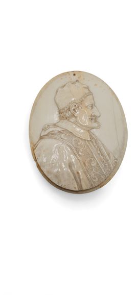 L’iconografia corrisponde con buona probabilità a Papa Innocenzo X Pamphilj pontefice dal 1644 al 1655 noto per il profilo caratteristico divenuto celebre anche attraverso il ritratto dipinto da Velázquez.
