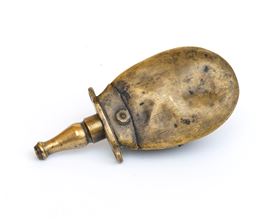 La forma a pera schiacciata richiama i modelli più diffusi in Europa tra la fine del XVII e il XVIII secolo, periodo in cui i portapolvere non erano solo strumenti funzionali per contenere e dosare la polvere da sparo, ma anche oggetti di pregio, simboli di status sociale e accessori legati al mondo della caccia aristocratica.