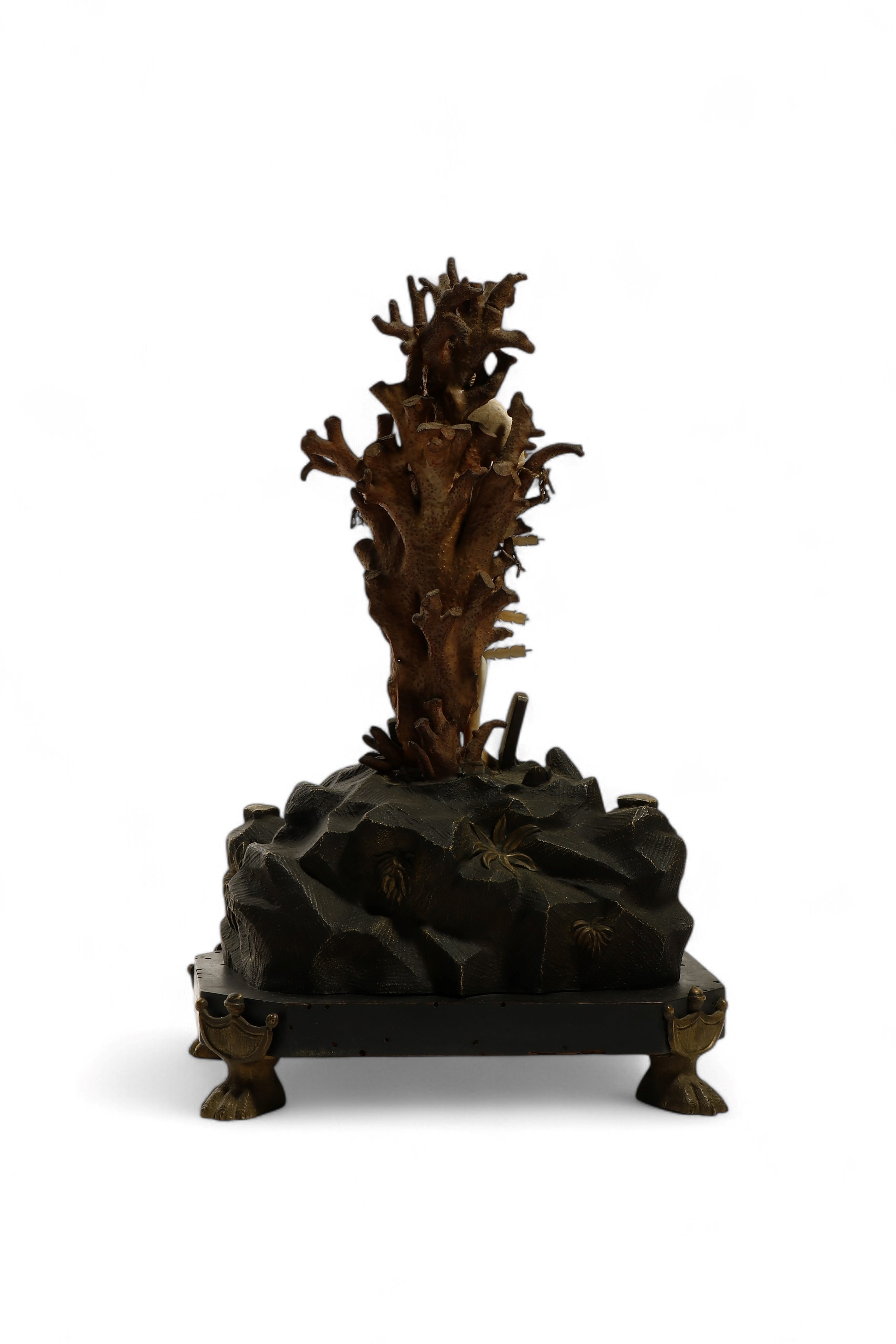 Per stile, materiale e resa del corpo, la scultura si inserisce pienamente nella tradizione dell’arte devozionale in avorio prodotta tra fine Seicento e primo Settecento. Le botteghe tedesche e austriache erano specializzate in piccole figure sacre destinate sia all’uso privato che a collezioni da Wunderkammer. La qualità dell’intaglio, unita alla ricchezza della base lignea e bronzea, conferma una destinazione aristocratica o conventuale.