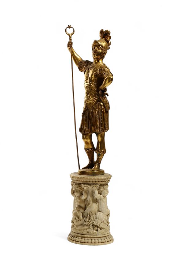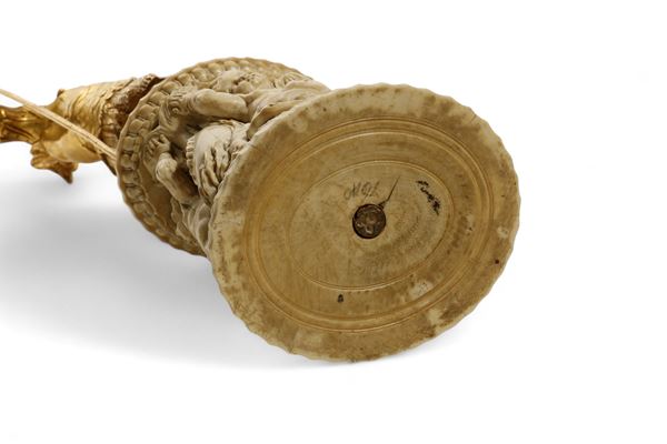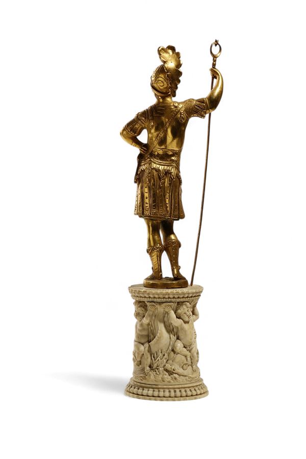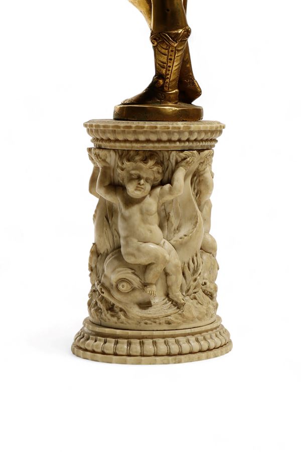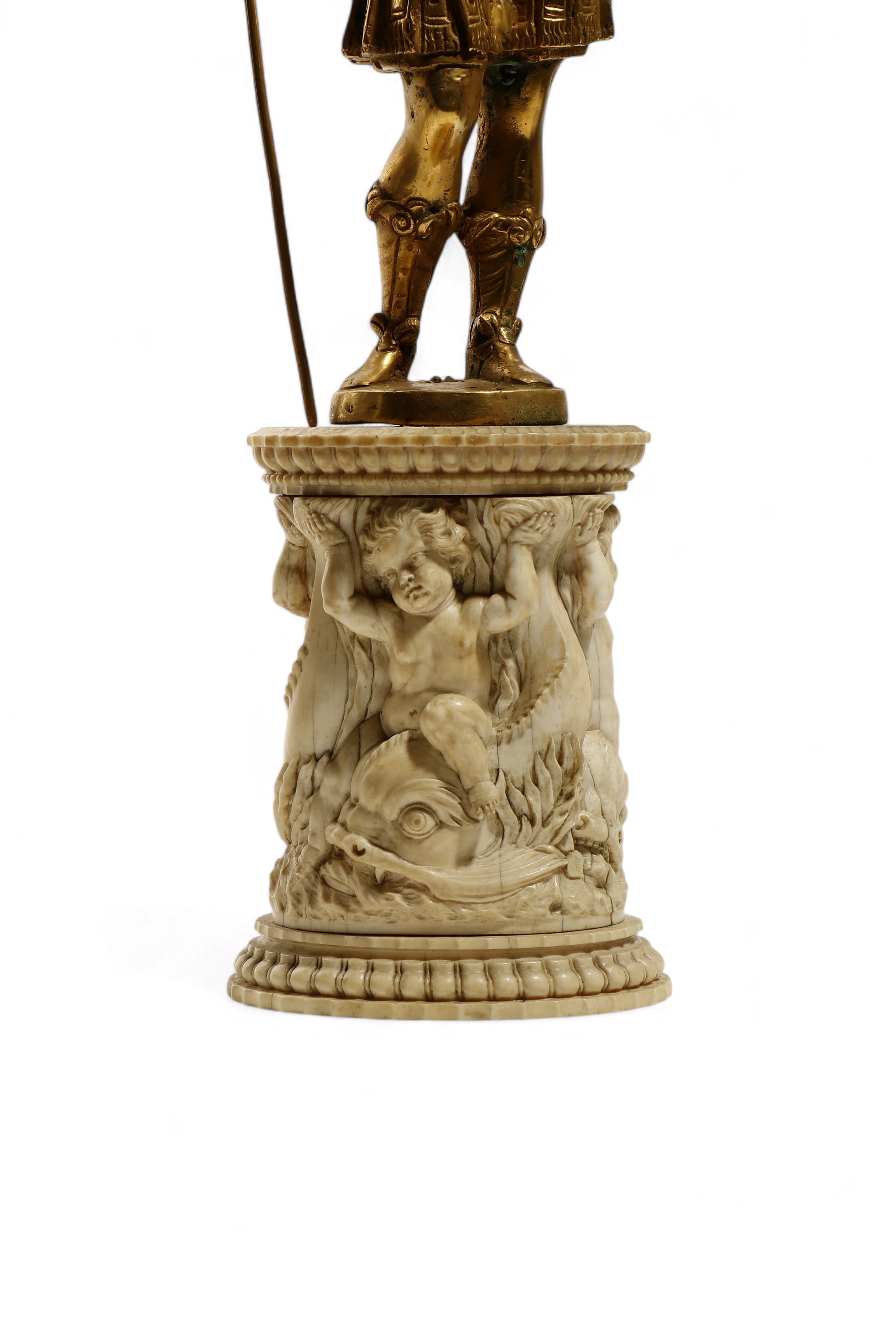 Scultura in bronzo dorato su base in avorio, Germania o Austria, XVI - XVII secolo
