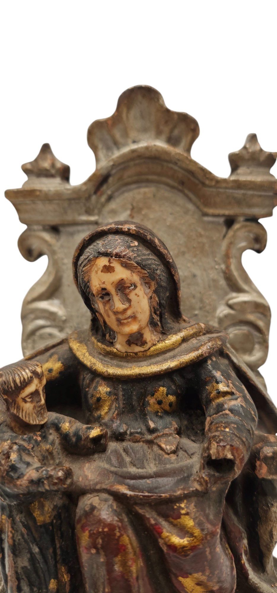 Scultura lignea con inserti in avorio, Indo Portoghese, fine XVII - inizio XVIII secolo