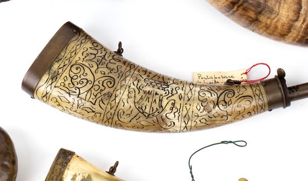 10 - grande portapolvere in corno di bufalo, XVIII secolo.