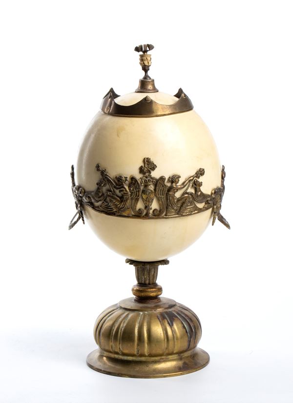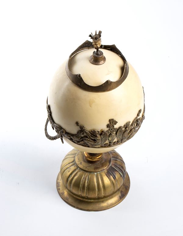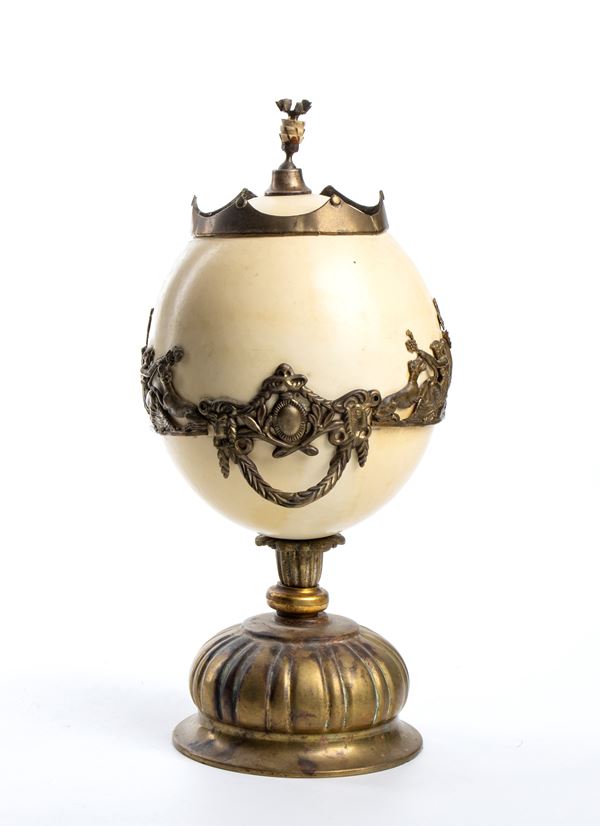 Uovo di struzzo su base in ottone, Italia o Francia, fine XIX secolo