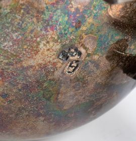 Punzonata con il marchio in uso alla corporazione degli orefici di Napoli per l'argento al titolo di 834/1000, 1808-1823, argentiere RM (non identificato).