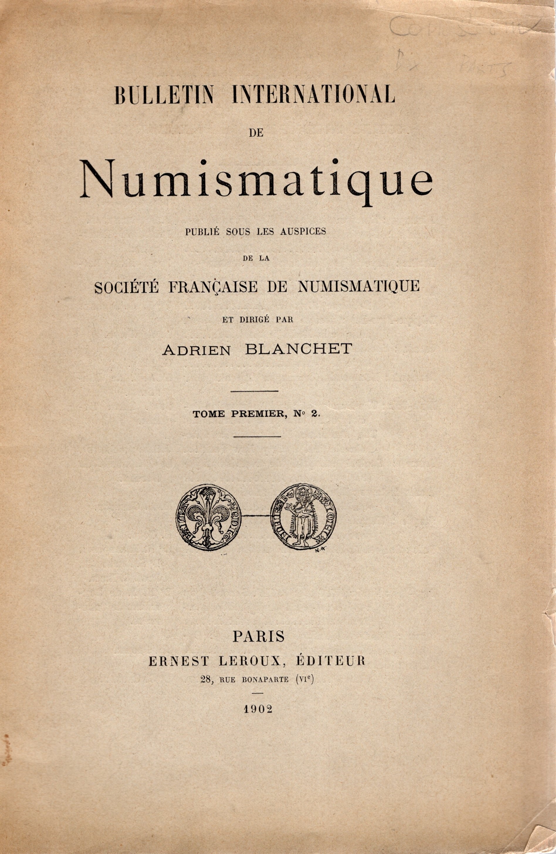 AA.-VV. - Bulletin International de Numismatique. Tome premier N 2. Paris, 1902. pp 37 - 68, illustrazioni nel testo. brossura editoriale, intonso, buono stato.