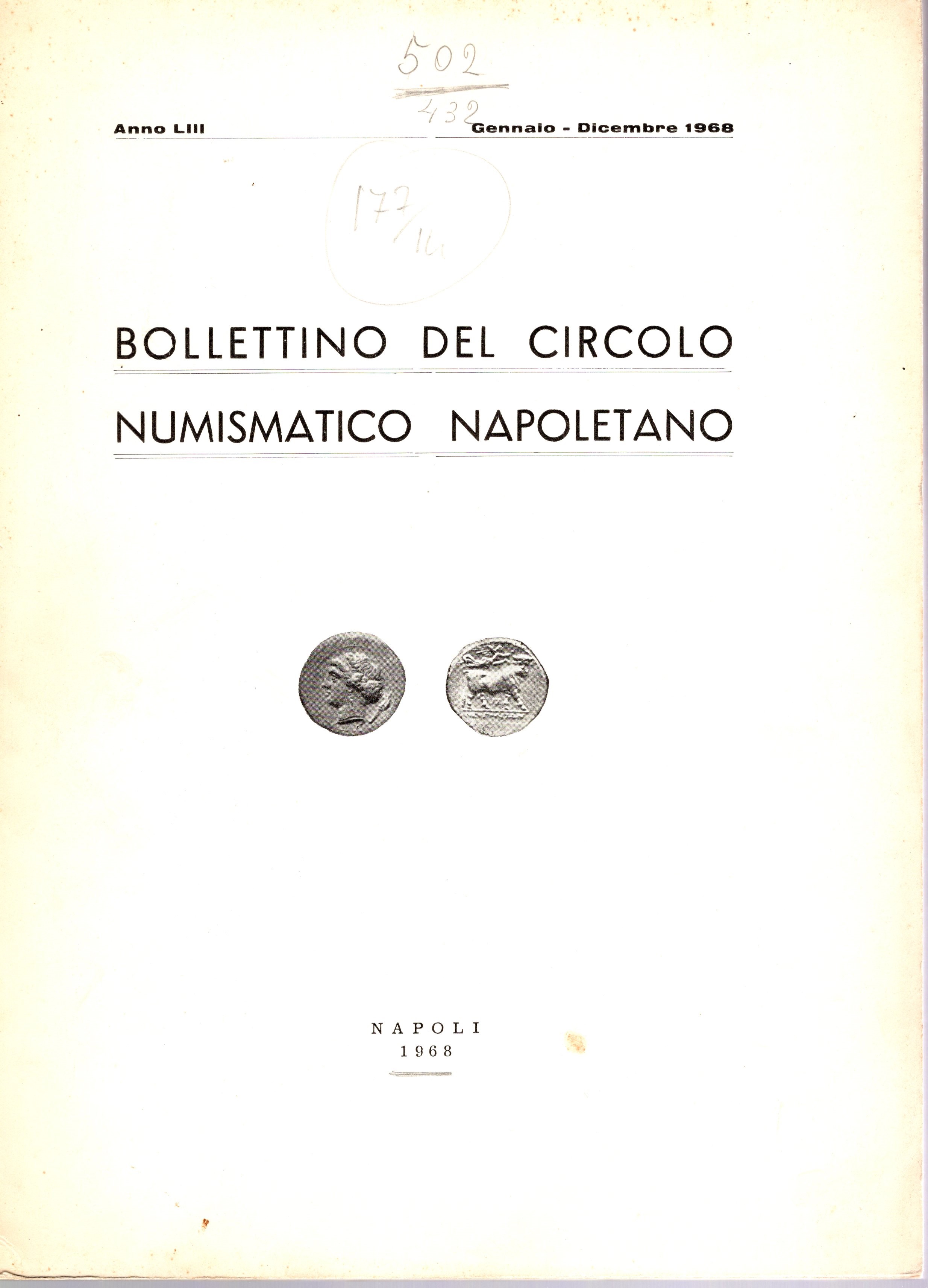 A.A.V.V. Bollettino del Circolo Numismatico Napoletano gennaio-dicembre 1968. Napoli, 1968.