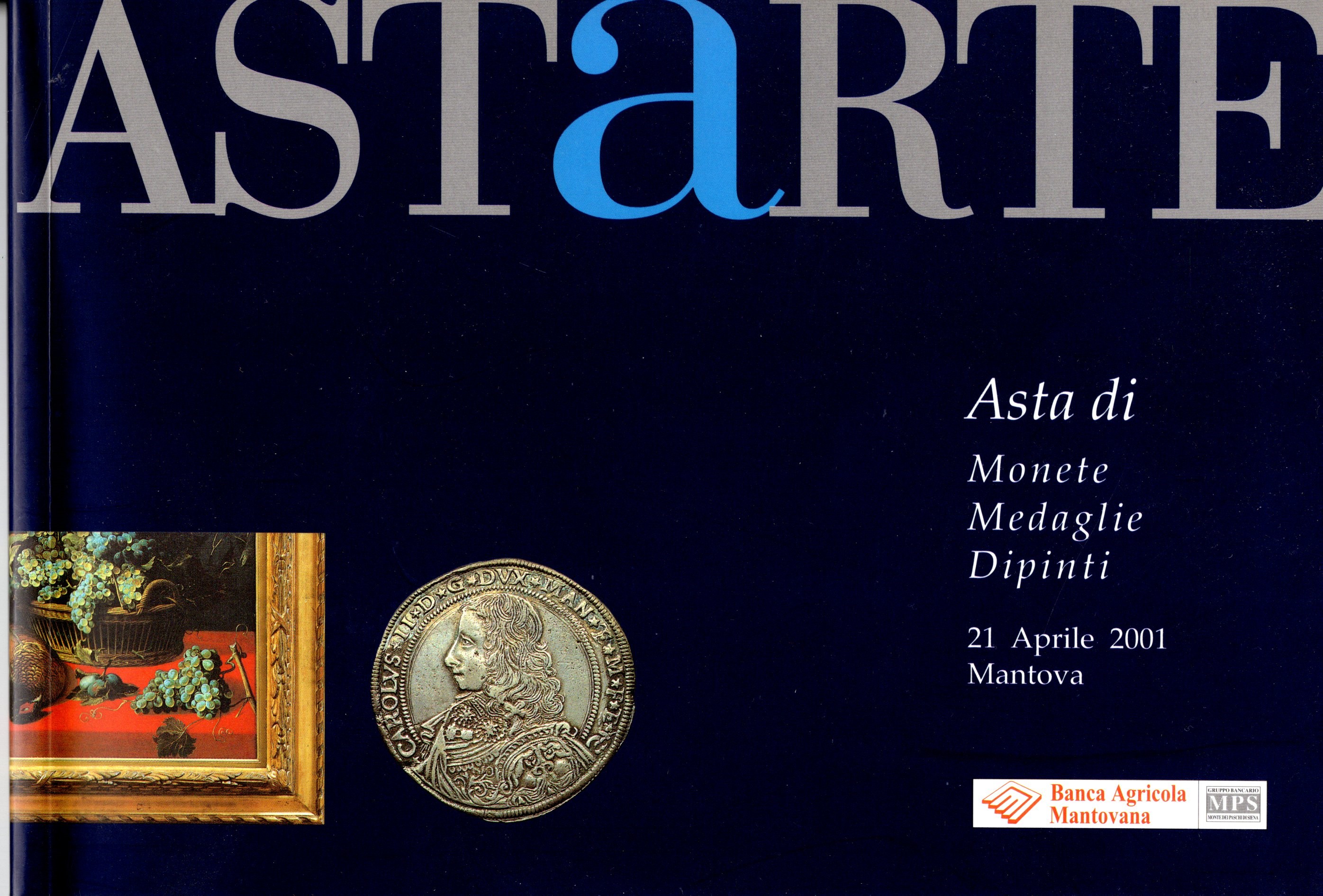ASTARTE. Mantova, 21 - Aprile, 2001. Collezione Banca Agricola Mantovana; monete di Mantova e dei Gonzaga. Medaglie di Mantova e dipinti della collezione Cappelletti. Pp79, nn. 160, illustrazioni a colori nel testo. ottimo stato, importante vendita.