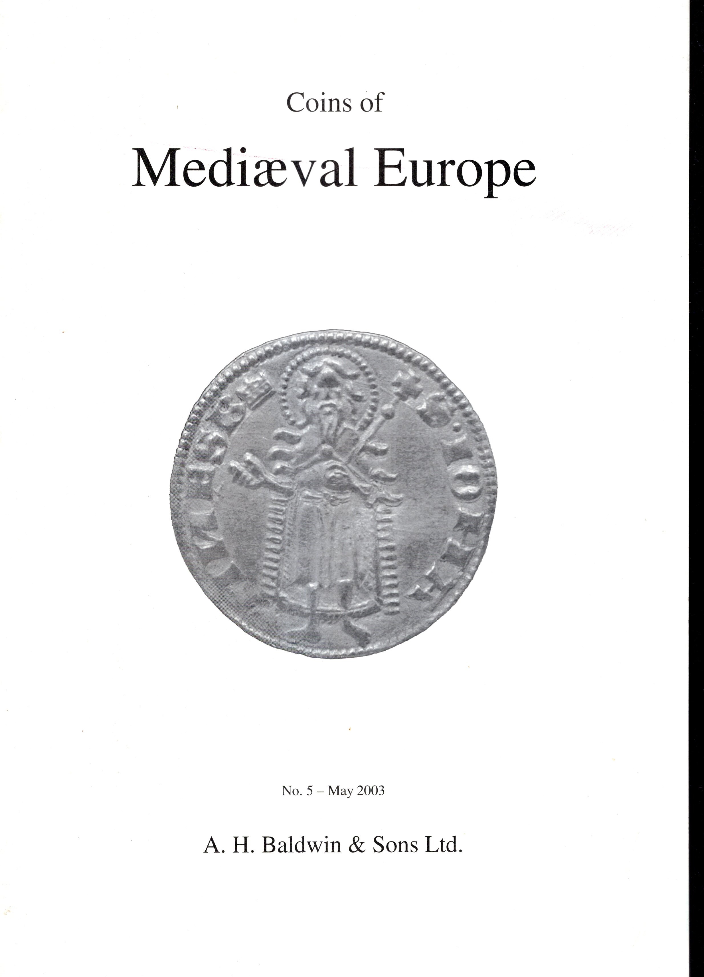 BALDWIN & SON Ltd - Price fixed n 5 London, May, 2003. Coins of Medieval Europe. Pp non num, lots 100, tutti illustrati. Brossura ed. buono stato.
