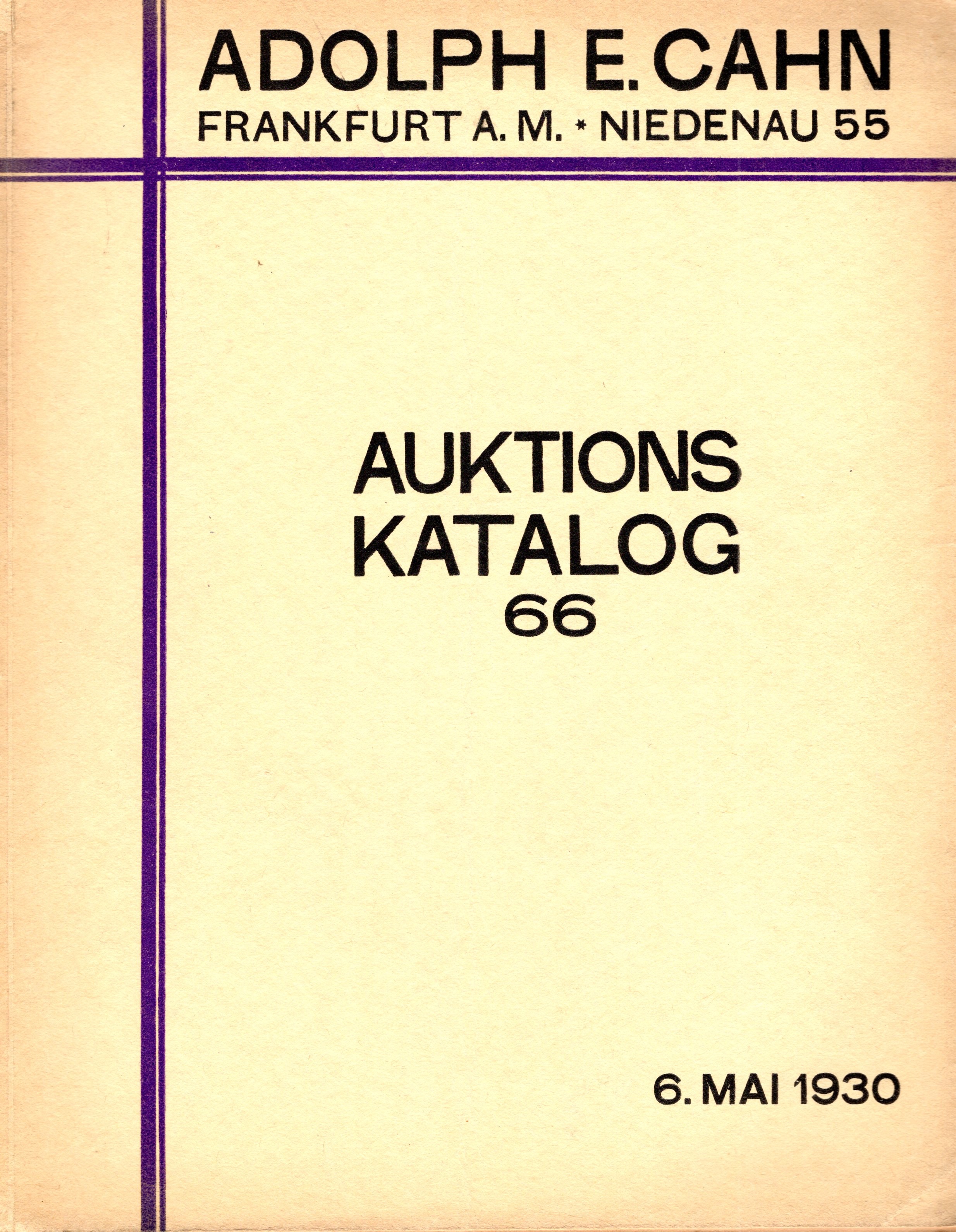CAHN A. Auktion 66. Frankfurt a. Main 6-5-1930.Sammlung Munzen Griechen,Romer,Byzantiner e Barbare di un Auslandischen Adligen. Parte. II Sammlung Russischer munzen. III munzen und medaillen Europaischer lander. pp. 160, nos. 2483. no plates. Paperback ed. inside in good condition, imp. Spring, 78