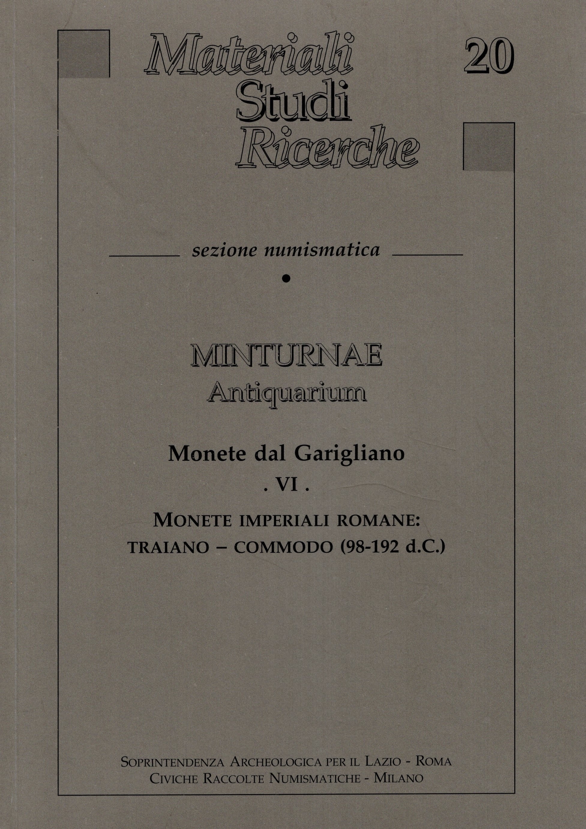 CATALLI Fiorenzo - BELLINI Giovanna Rita. - Monete dal Garigliano VI. Monete imperiali romane: Traiano - Commodo ( 98 - 192 d.C.) Milano, 2001. pp 85, tavv. 18.rilegatura ed. ottimo stato. documentazione di 318 bronzi schedati e fotografati.