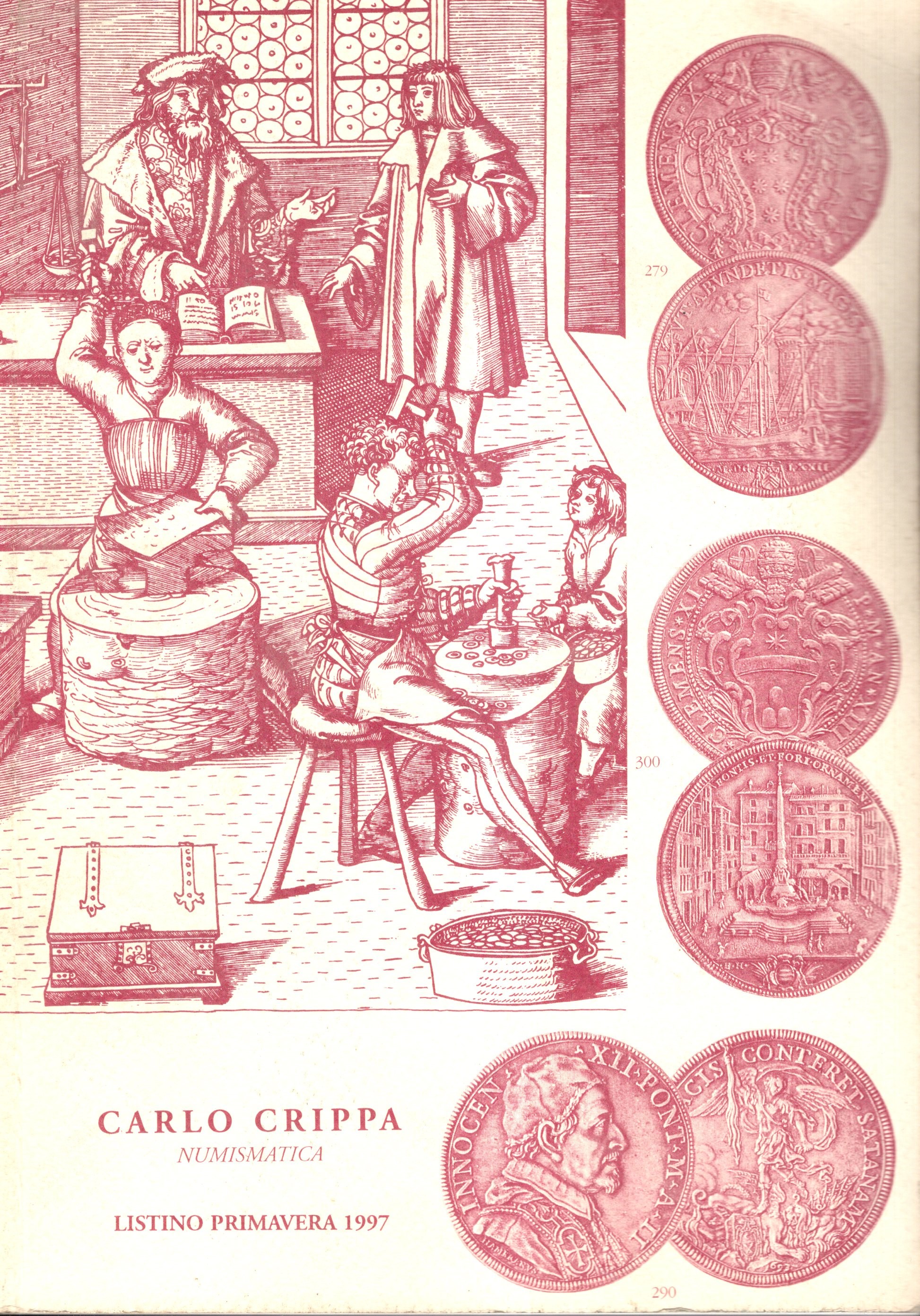 CRIPPA Carlo - Listino a prezzi fissi Milano, Primavera,1997. Monete greche, romane della Repubblica e Imperiali, Monete barbariche, bizantine monete medioevali italiane, Oselle di Murano, monete estere, medaglie di Venezia e Bergamo, libri di numismatic