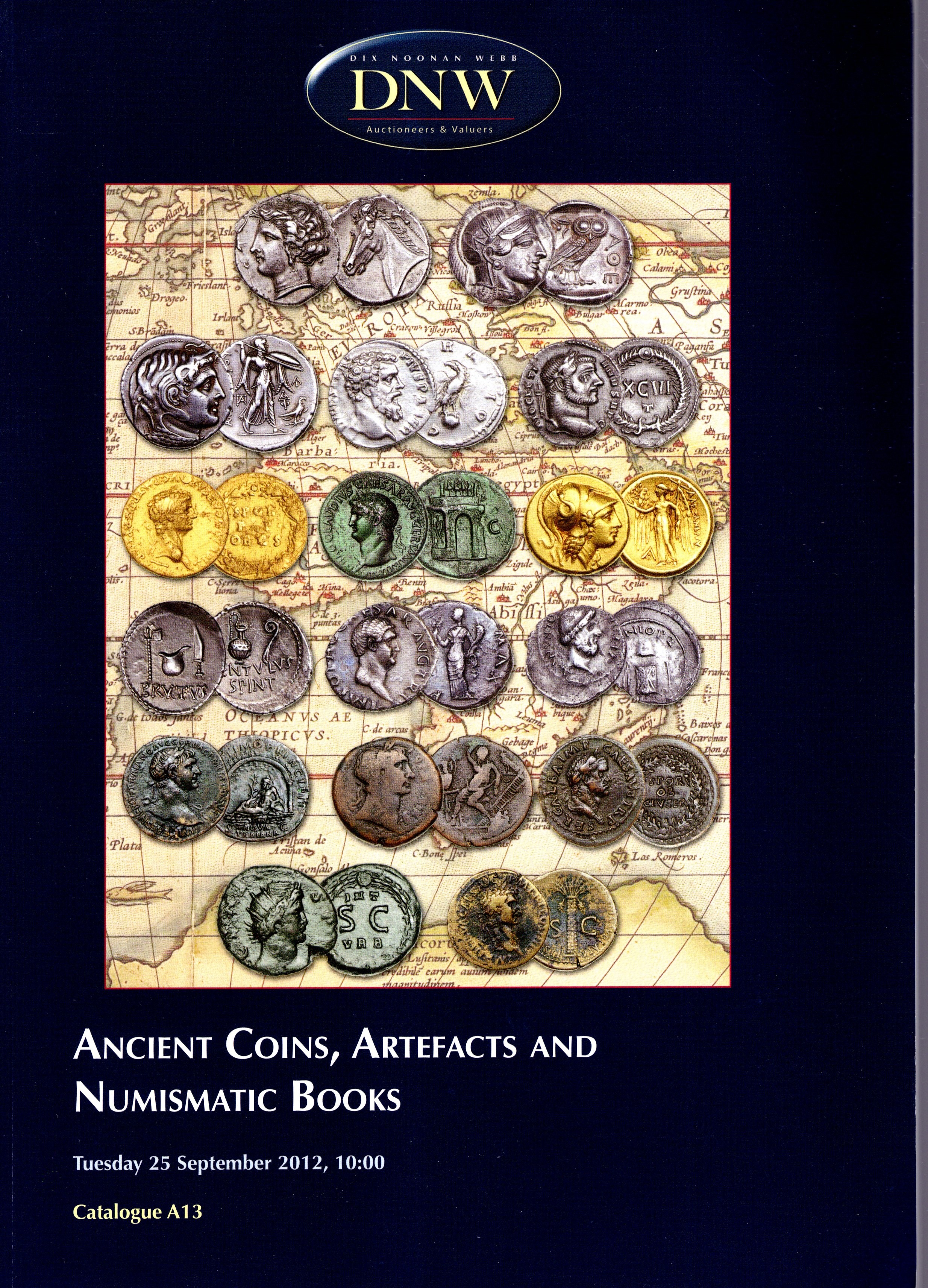 DNW - London, 25- September, 2012. Ancient coins artefacts and numismatic books. Pp non num. lots 3001 - 3921, illustrazioni a colori nel testo. Legatura ed. ottimo stato.