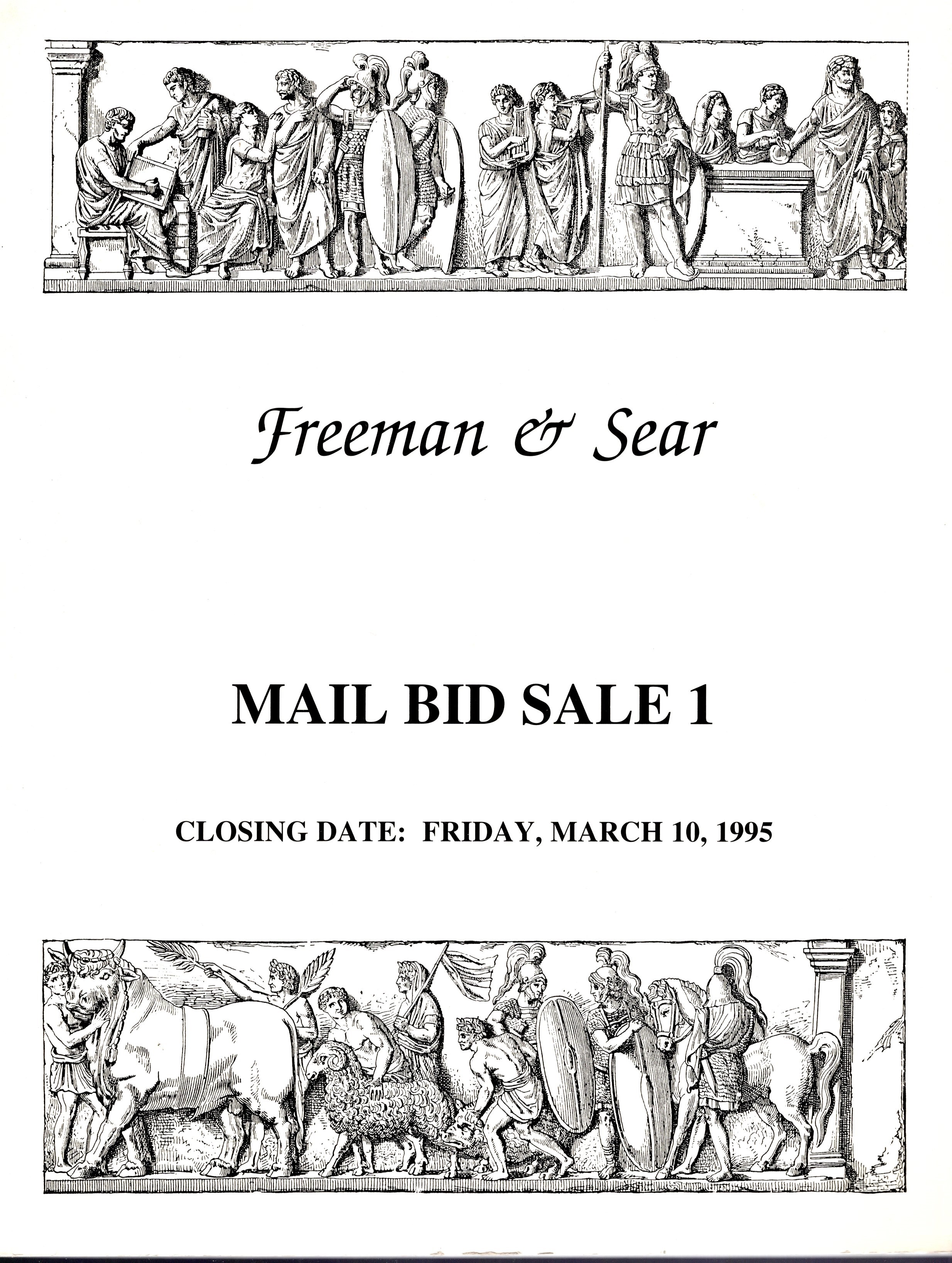 FREEMAN & SEAR. Mail Bid Sale 1. Closing date 10 - March, 1995. Ancient coins. Pp non num, lots 949, tutti illustrati in tavole b\n non numerate Legatura ed. ottimo stato.