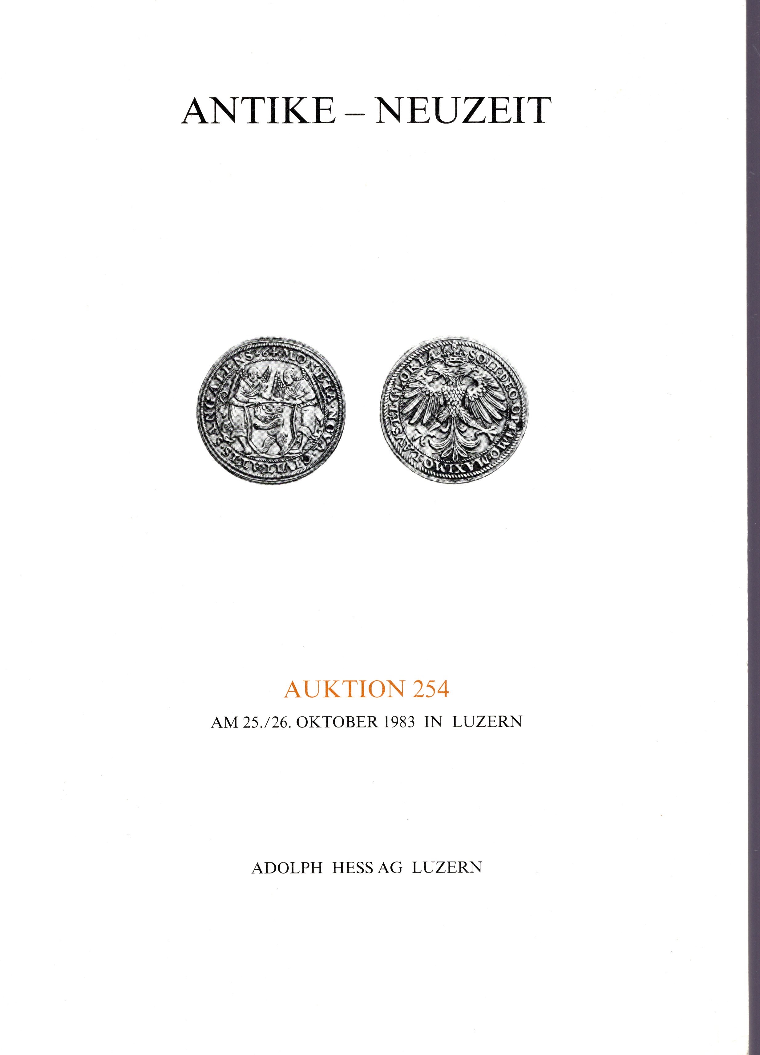 HESS Adolph AG. Auktion 254. Luzern, 25\26 - Oktober, 1983. Griechische und Byzantininische munzen, Islamische munzen, Freimauer-medaillen und Abzeichen aus sammlung Stroehlin, Sammlung Schweizer silbermunzen… pp 155, lots 1558, plates 49 + 3 ingrandime