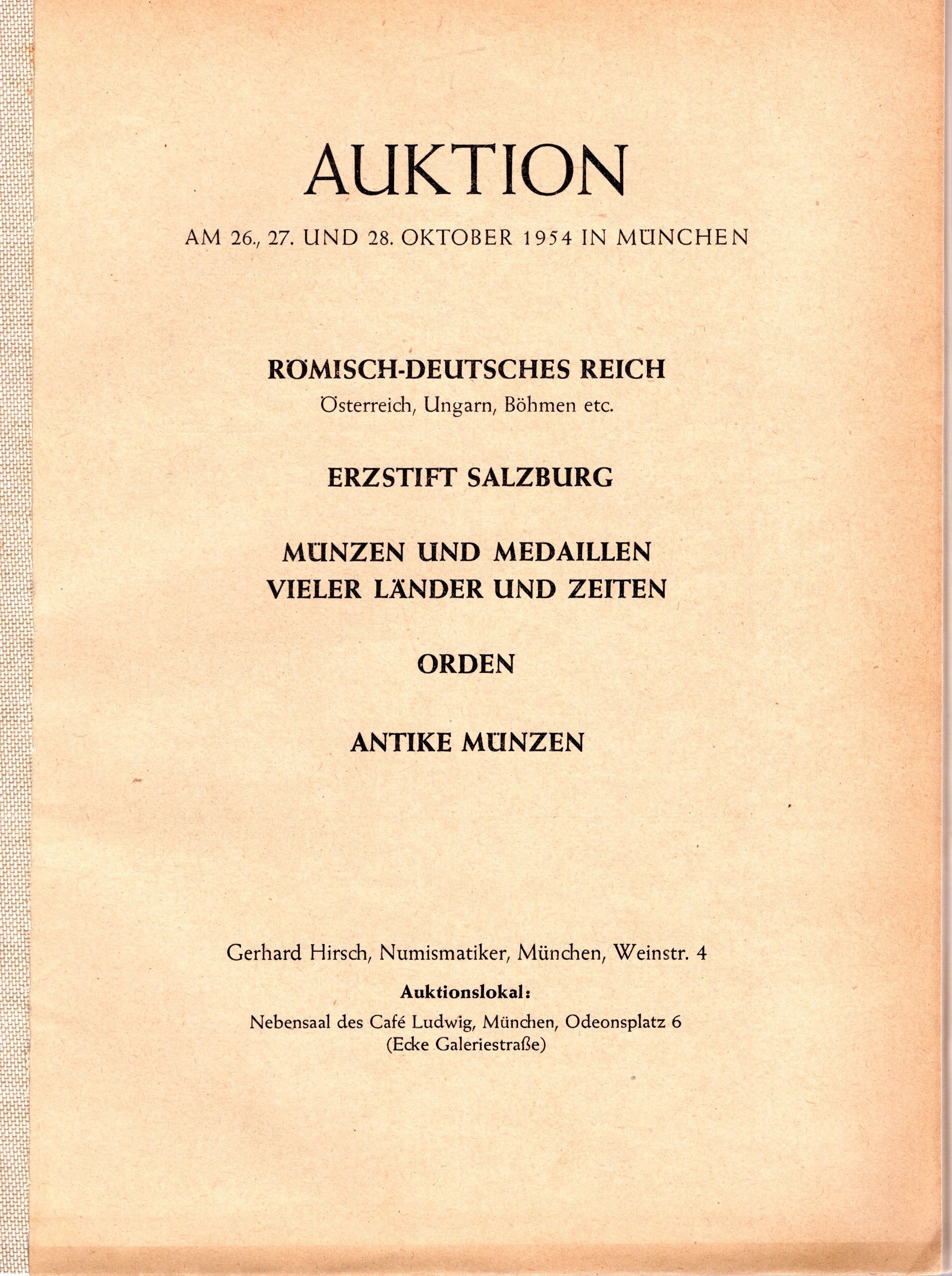 HIRSCH G. - Auktion Munchen, 26\28 - Oktober, 1954. pp. 65, nn. 1474, tavv. 16. mancante della brossura, interno ottimo stato.
