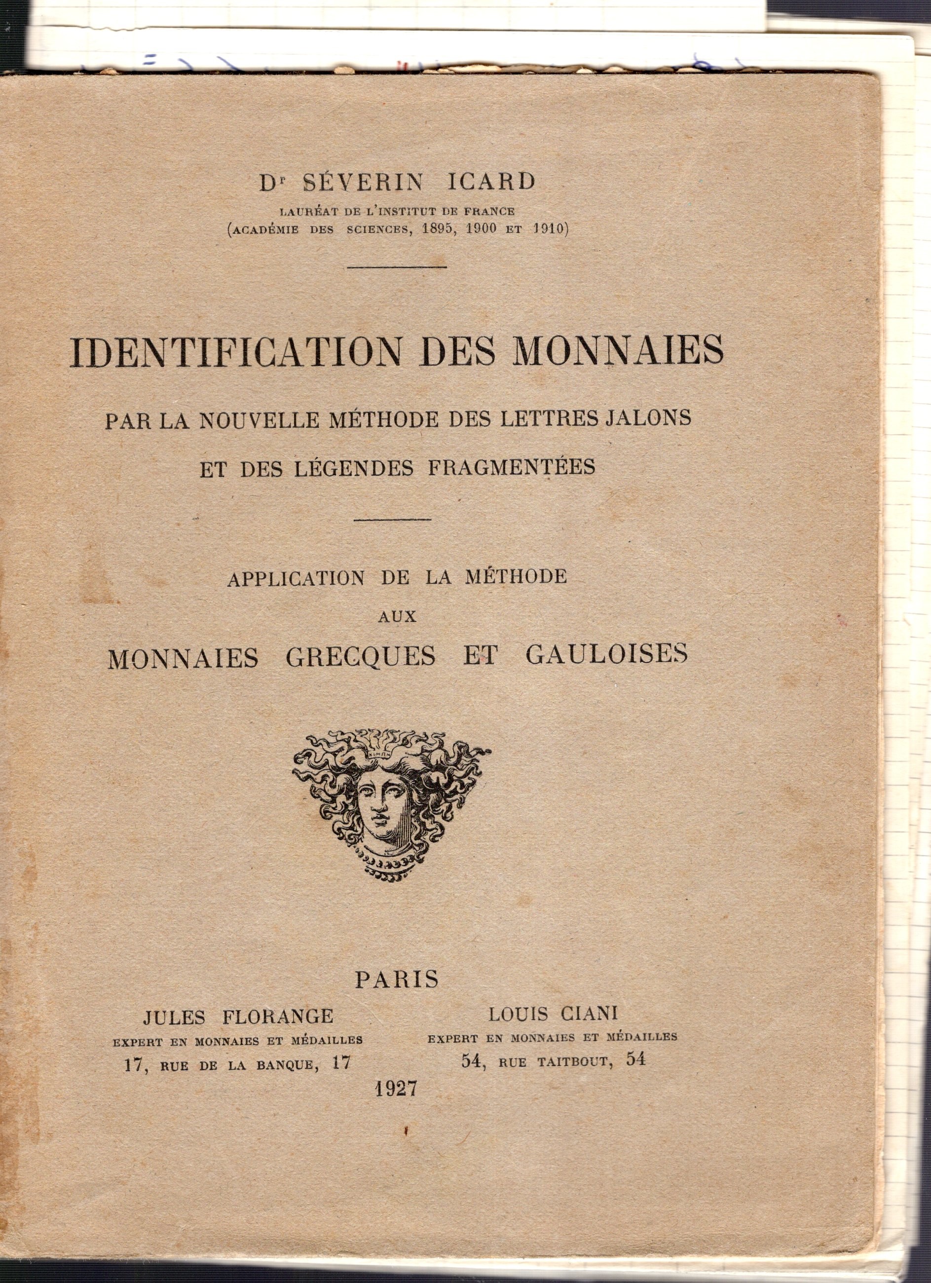 ICARD Severin - Identification des monnaies par la nouvelle methode des lettres jalons et des legendes fragmentaire. Application de la methode aux monnaies grecques et galuoise. Paris, 1927. pp 23. Brossura ed. buono stato, raro. Contiene una traduzione in italiano scritta a penna.
