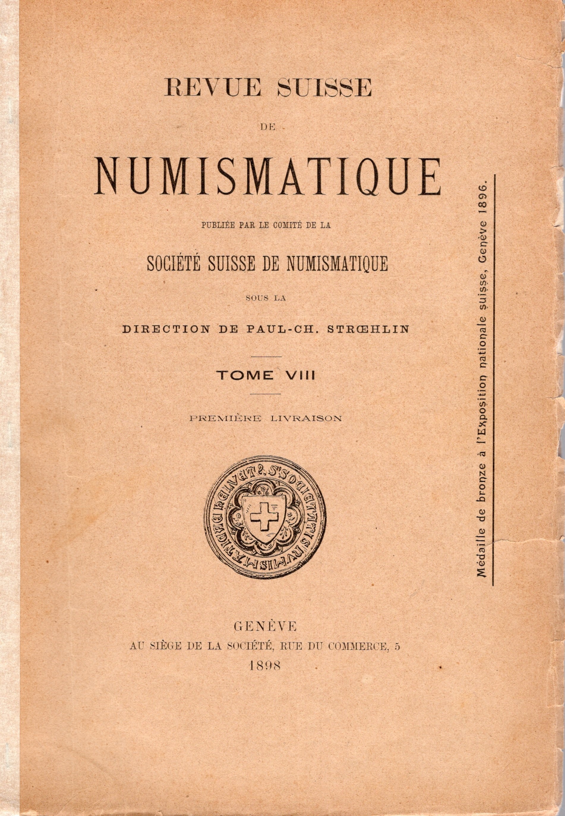 IMHOOF-BLUMER F. - Zur griechischen munzkunde ( Eusebeia Kaisareia, - Elaiusa Sebaste, - reichmunzen der syrischen Provinzen. - Die Area von Paltos, - Antiocheia Gerasa.). Geneve, 1898. pp 48, tavv. 2. brossura ed, sciupata, interno ottimo stato, intonso, raro e ricercato. C.S. -