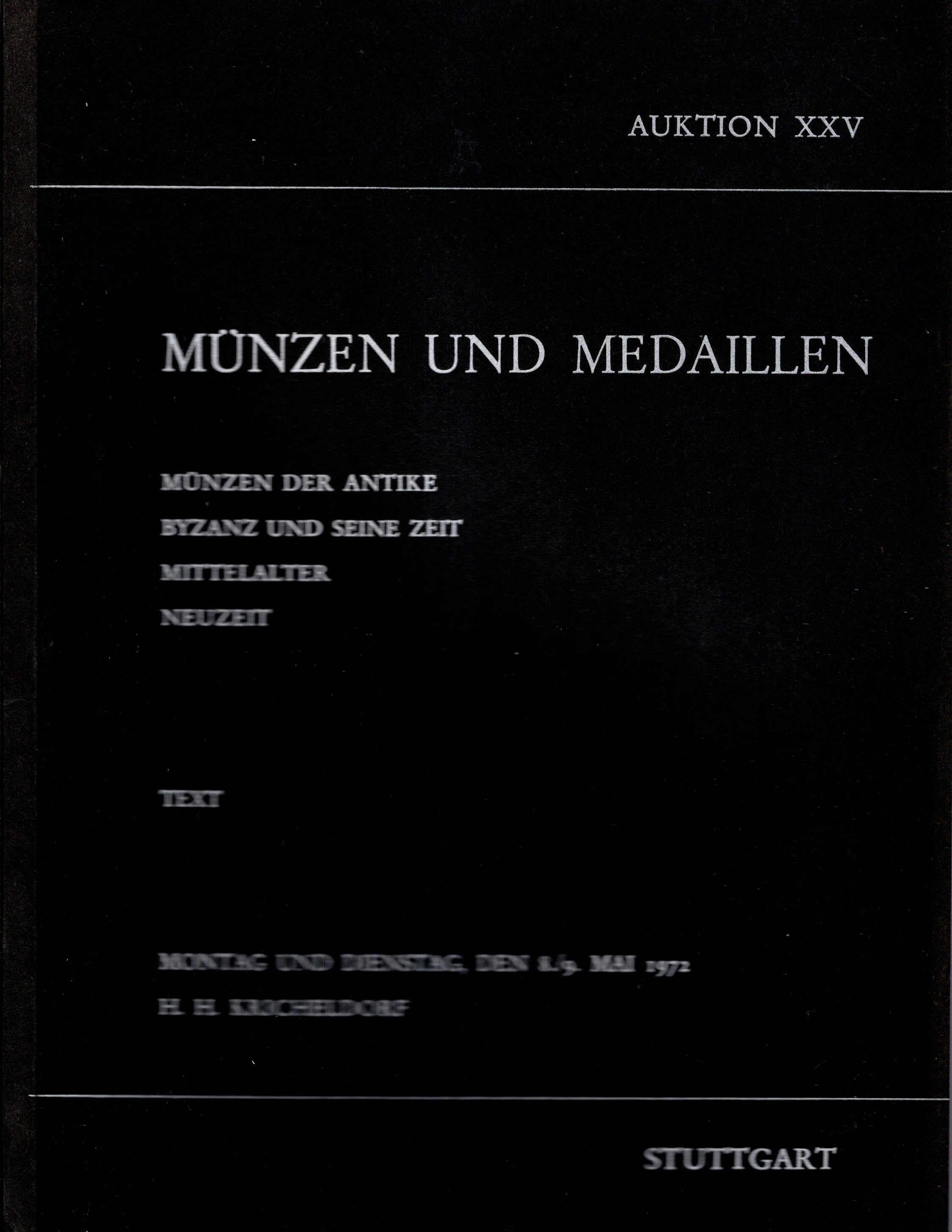 KRICHELDORF H.H. - Auktion XXV. Stuttgart, 8\9 - May, 1972. 2 volumi testo e tavole. Munzen der antike, Byzanz und seine zeit mittelater…. Pp 99, lots 1881, plates 39. Legatura ed. lista prezzi Aggiudicazioni. Ottimo stato.