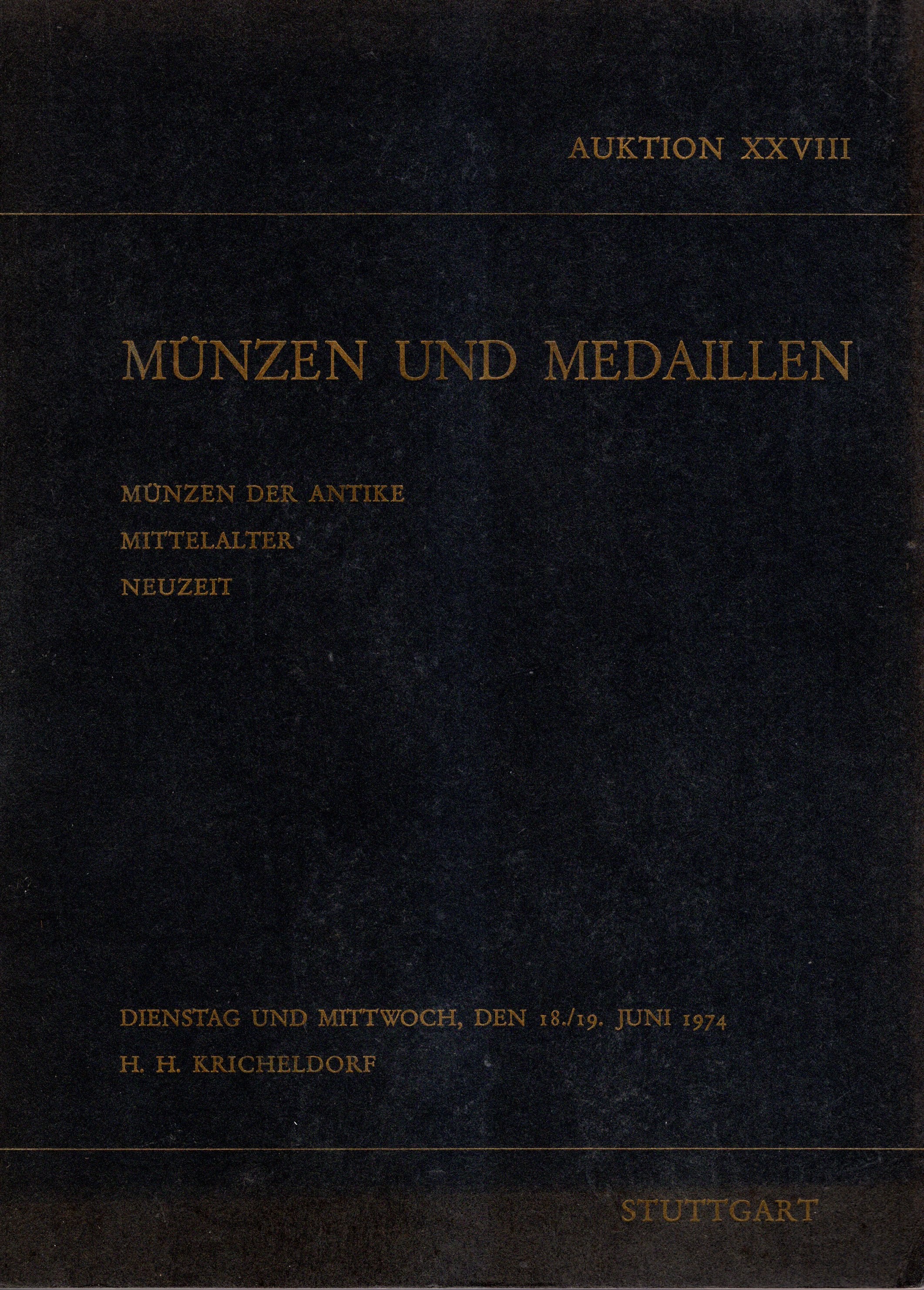 KRICHELDORF H.H. - Auktion XXVIII. Stuttgart, 18\19 - Juni, 1974. Munzen der antike, mittelater… pp 112, lots 1453, plates 60.Legatura ed. ottimo stato.