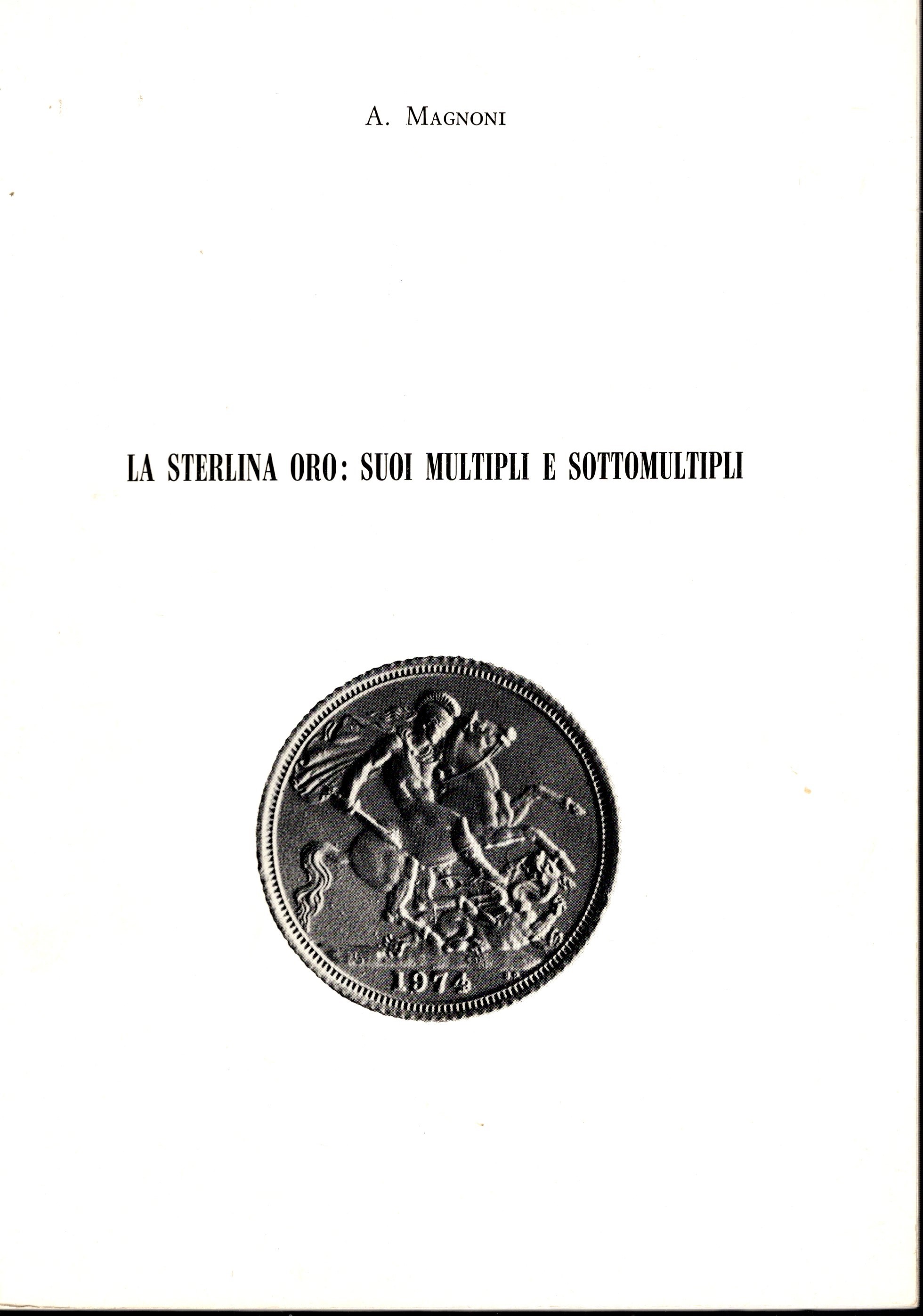 MAGNONI A. - La sterlina oro:suoi multipli e sottomultipli. Modena, 1978. Pp. 70, tavv. 8. Ril. ed. ottimo stato. ottimo manuale con descrizione e tiratura dei pezzi delle varie zecche, con gradi di rarità