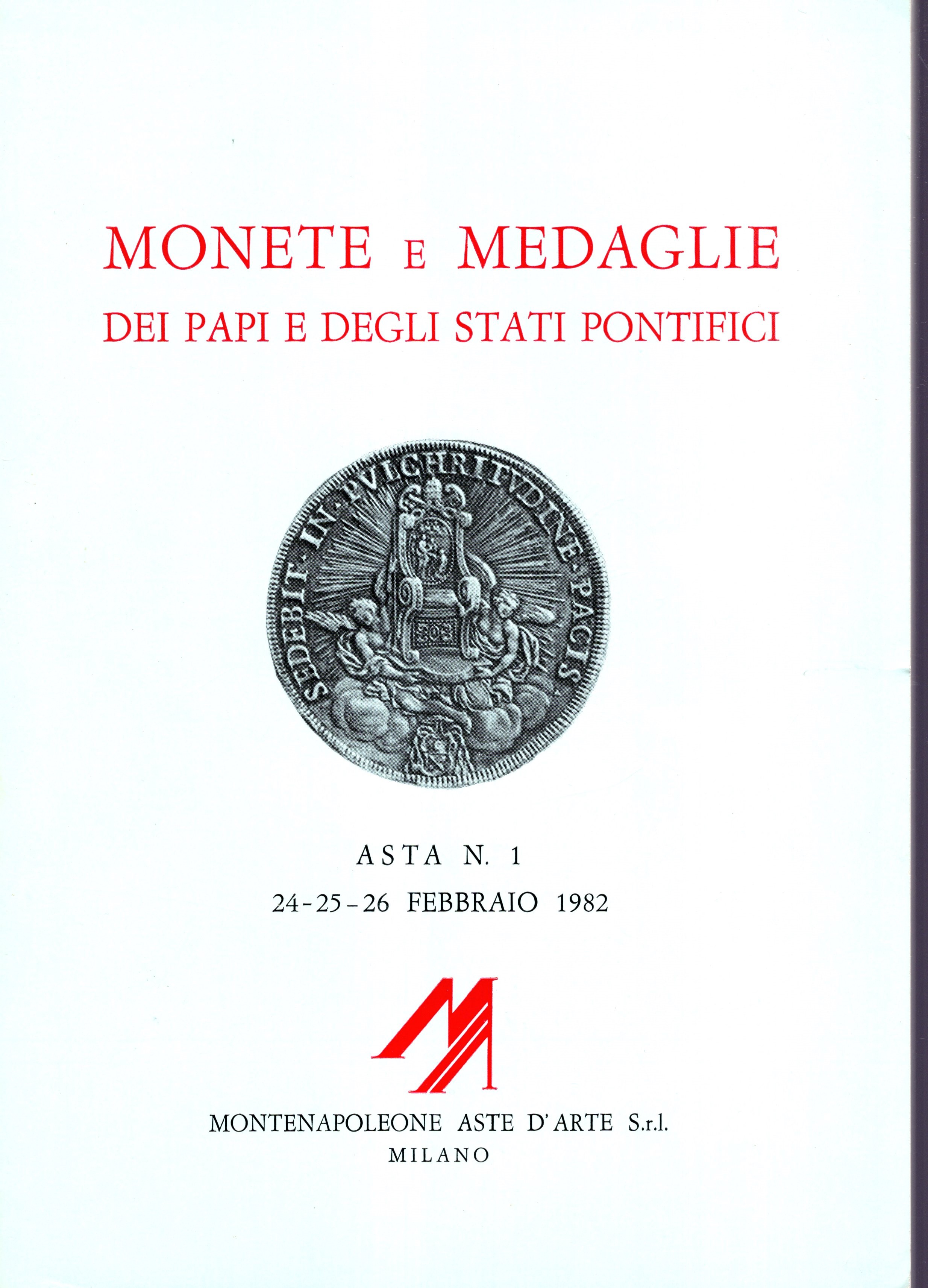 MONTENAPOLEONE S.r.l. - Asta n 1.Milano, 24\26 - Febbraio, 1982. Monete e medaglie dei Papi e degli Stati Pontifici. Pp 93, lots, 1076, plates 54. Legatura ed. liste prezzi Vaultazioni e Aggiudicazioni, ottimo stato, importante vendita di monete papali.