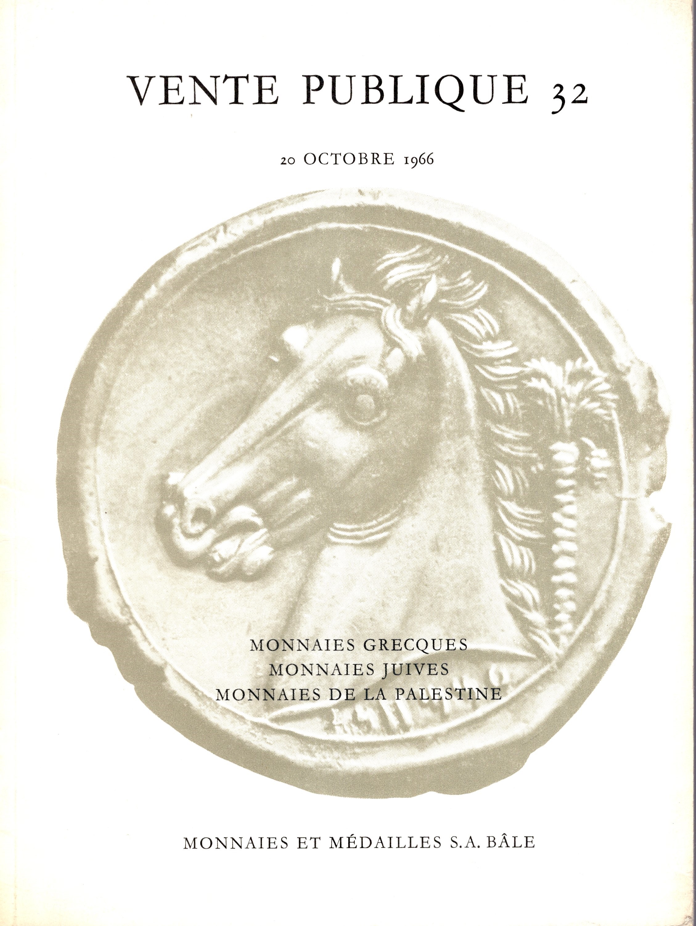 MUNZEN UND MEDAILLEN . – Vente publique, 32. Basel, 20 - -October, 1966. Monnaies grecques, Juives, et de la Palestine. Pp. 52, lots 529, plates 32. Legatura ed. sciupata, lista prezzi valutazioni e Aggiudicazioni. importante vendita Spring, 459