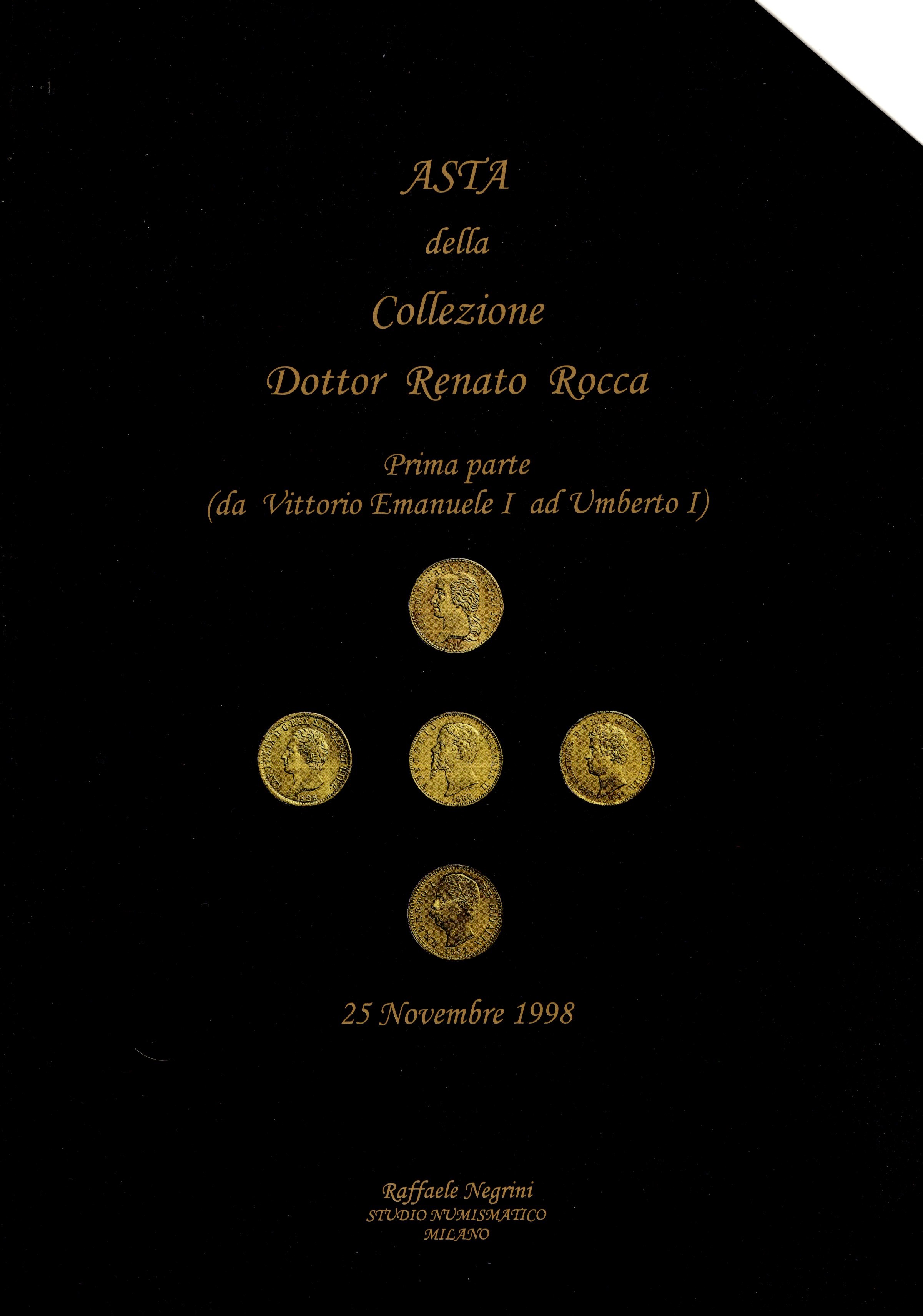 NEGRINI Raffaele. Collezione Dottor Renato Rocca. Prima parte ( da Vittorio Emanuele I ad Umberto I). Milano, 25 - Novembre, 1998. pp 113, nn. 490, tutti illustrat, + 7 tavole a colori. rilegatur editoriale, mancante di un angolo, interno ottimo stato. importnte vendita.