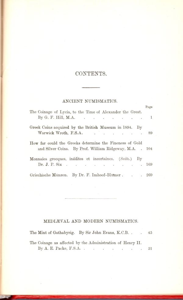 NUMISMATIC CHRONICLE - London, 1895. Volume completo. pp 324 + altre, plates 10. Splendida legatura in \ pelle con scritte sul dorso e iniziali del collezionista, interno ottimo stato, molto raro completo.