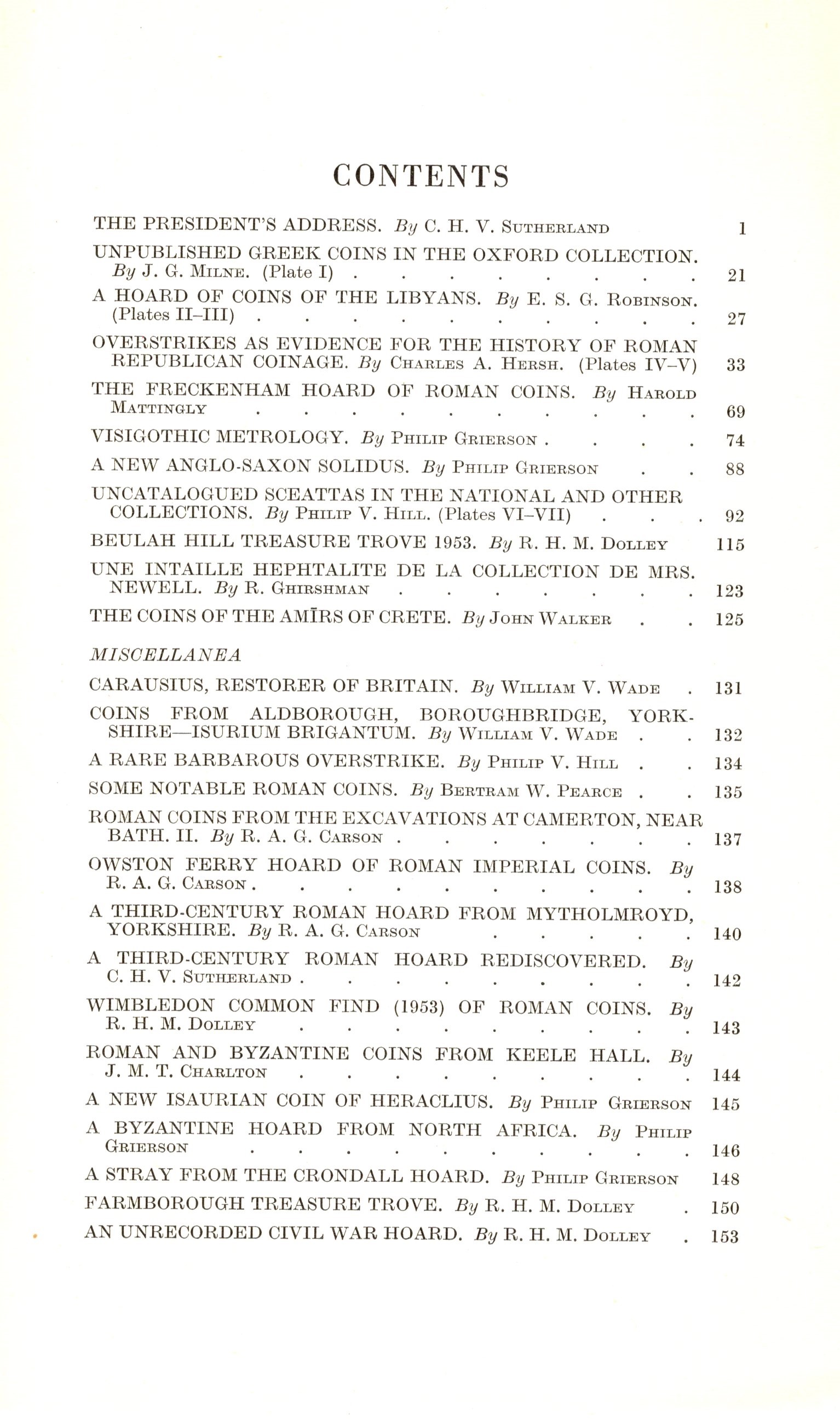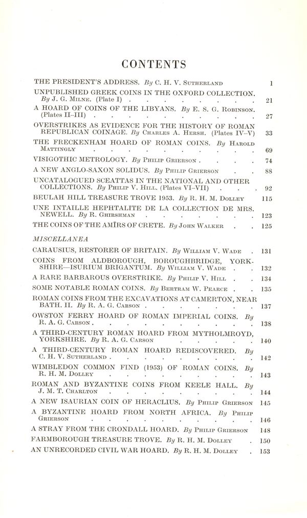 NUMISMATIC CHRONICLE - London, 1953. completo. pp 194 + altre, plates 7. Legatura ed. sciupata, interno buono stato. contiene ottimi lavori di sui ripostigli di monete