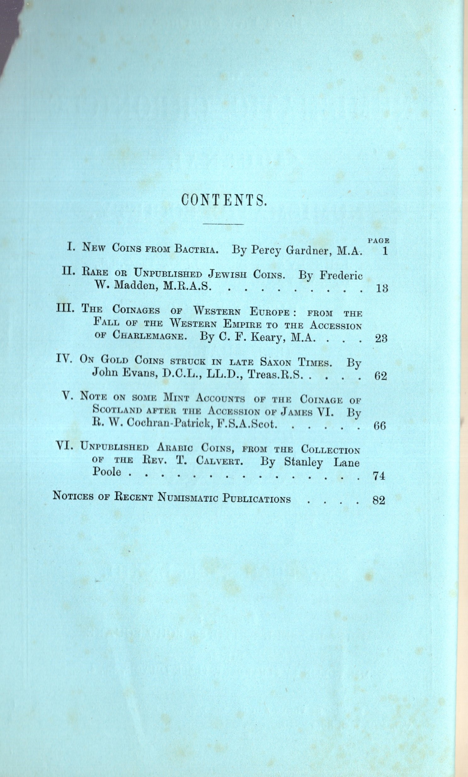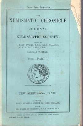 NUMISMATIC CHRONICLE - London, part I, 1879. Pp 84, plates 3 Legatura ed, sciupata, interno buono stato, molto raro