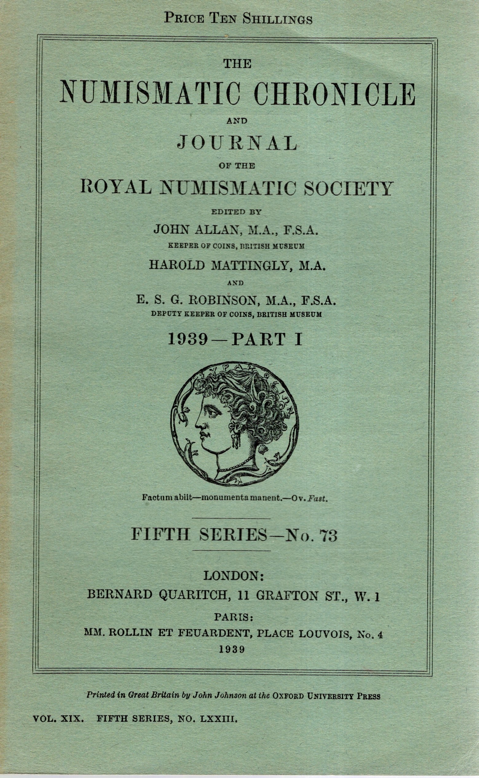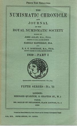 NUMISMATIC CHRONICLE - London, part I. 1939. Pp 103,+ altre, plates 5 Legatura ed, sciupata, ,interno buono stato, molto raro