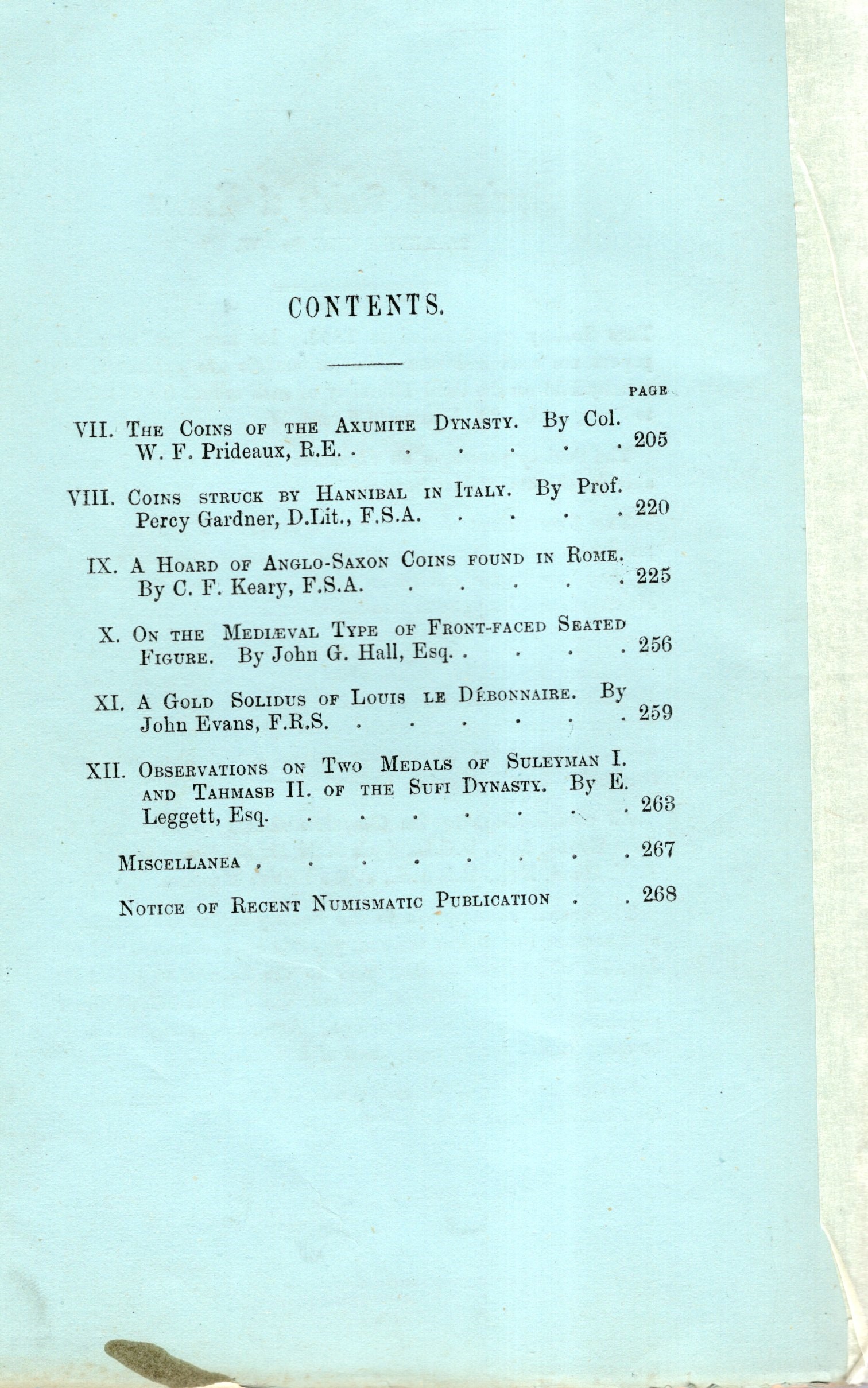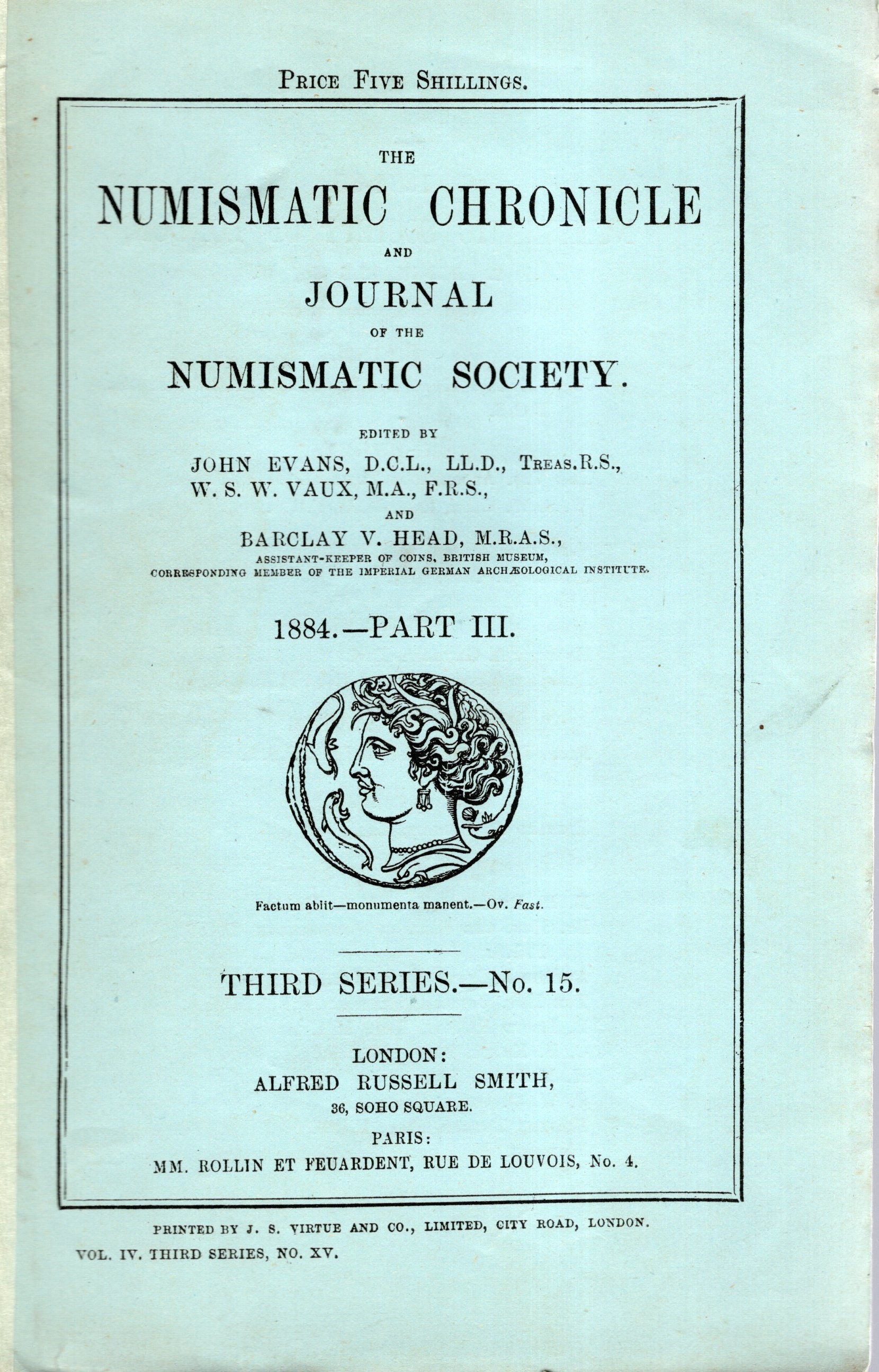 NUMISMATIC CHRONICLE - London, Part III - 1884. pp 205-268, plates 2. Legatura ed. sciupata, interno ottimo stato, intonso, molto raro.