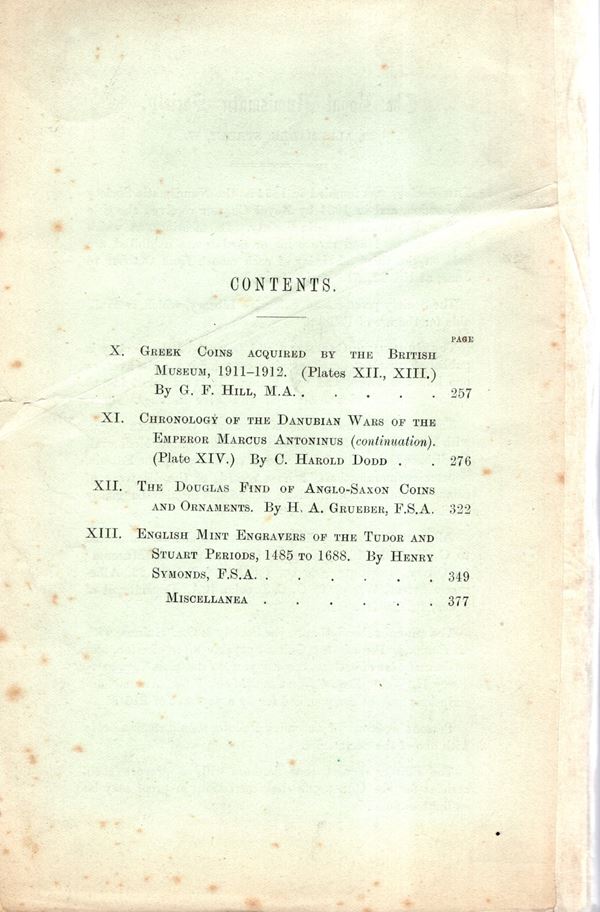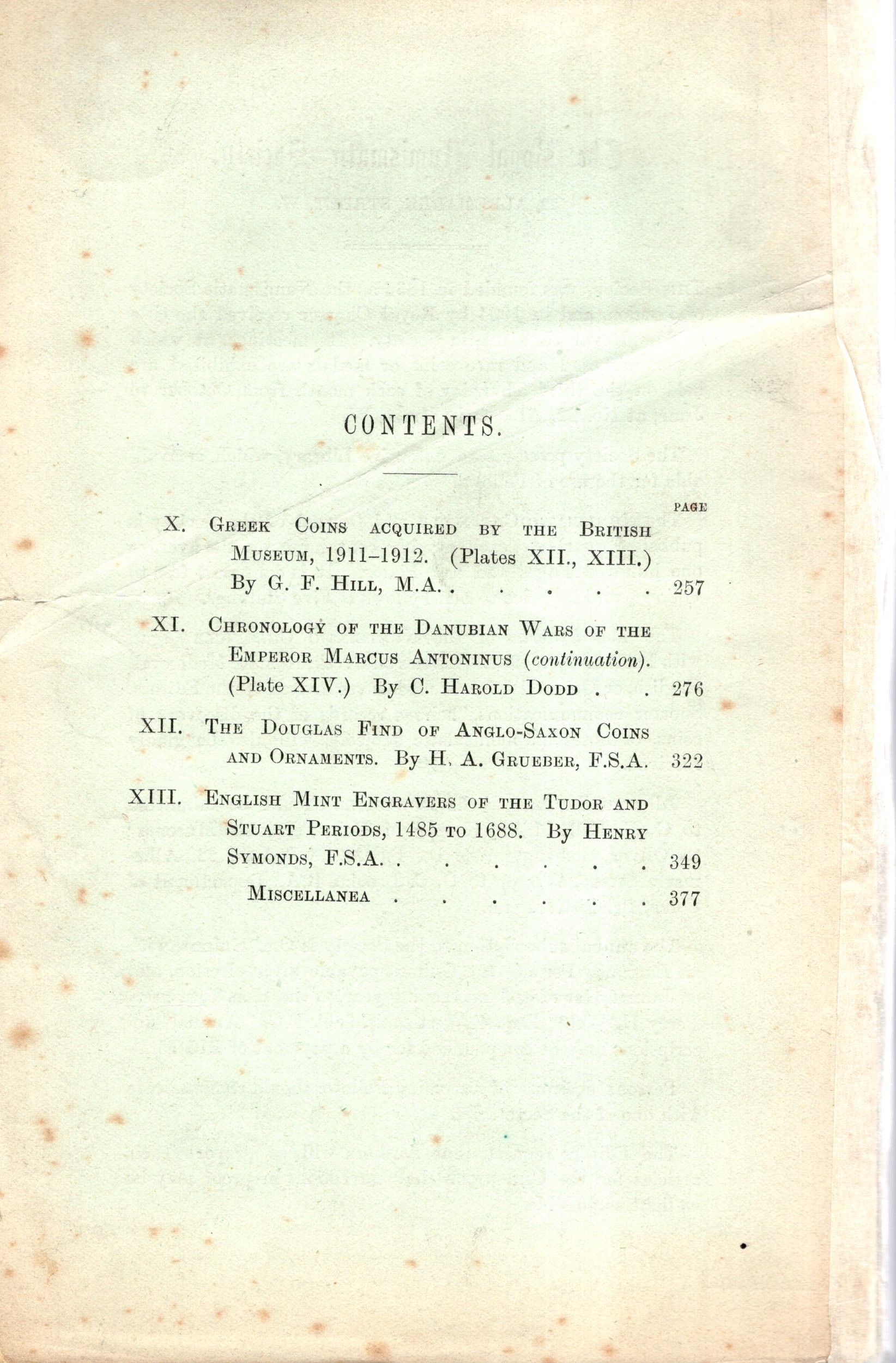 NUMISMATIC CHRONICLE - London, Part III - 1913. pp 257-380, plates 3. Legatura ed. otimo stato, raro