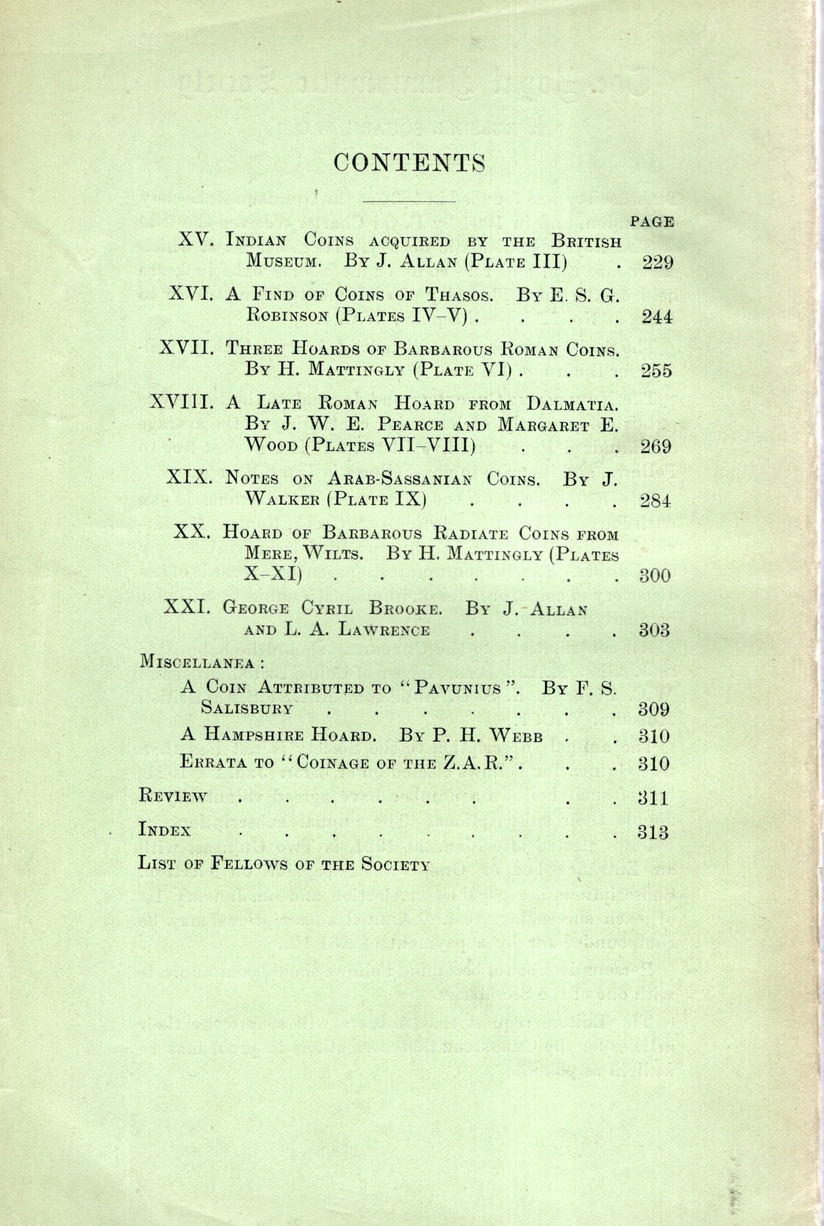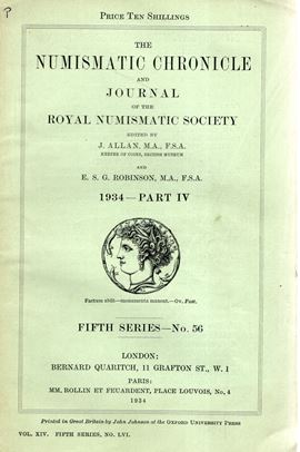 NUMISMATIC CHRONICLE - London, part IV 1934. Pp 229- 316,+ altre, plates 9 Legatura ed, sciupata, ,interno buono stato, molto raro