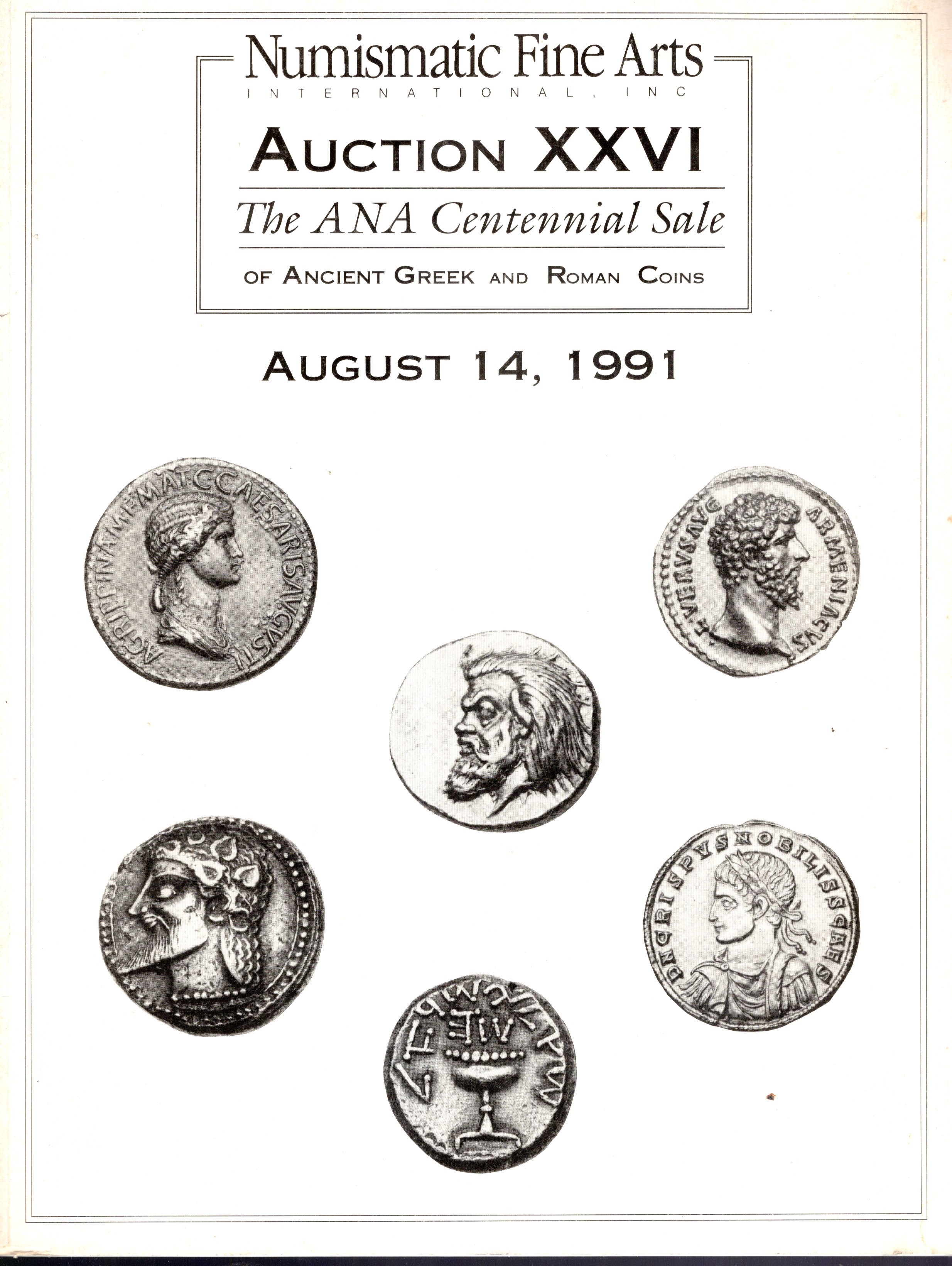 NUMISMATIC FINE ARTS. Auction XXVI. Ancient Greek and Roman coins. Chicago, 14 – August – 1991. pp.nn. , nn. 387, tutti illustrati + plates 3 a colori, e 11 in b\n. Brossura ed. buono stato, importante serie della Palestina.