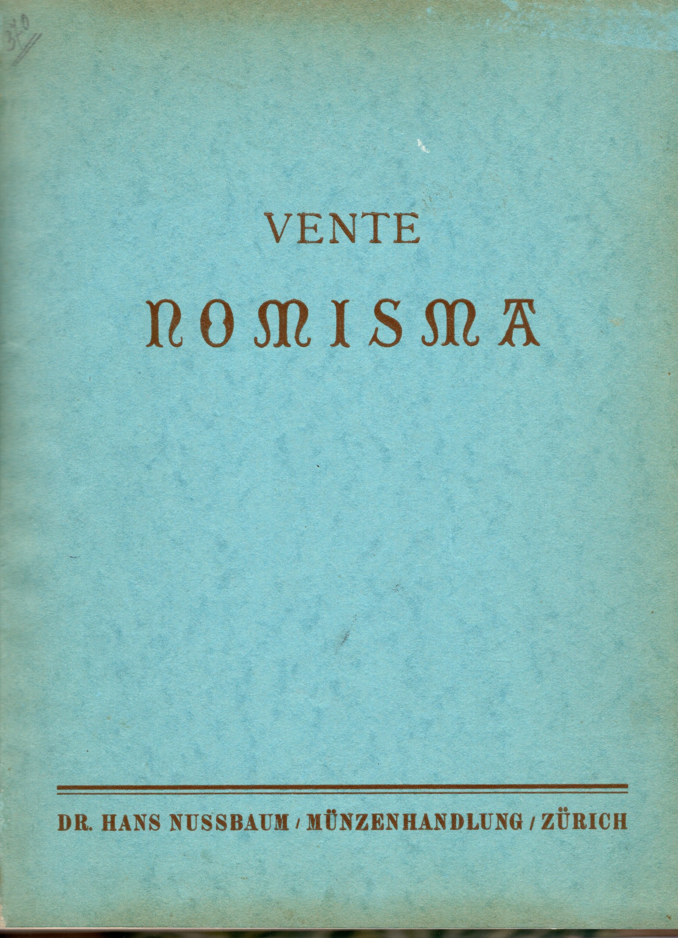 NUSSBAUM H. - Vente Nomisma. Zurich, 26 - Februar, 1934. Spezialsammlung von munzen der Sudlichen Niederlane und von historischen Niederlandischen medaillen sowie solchen des Hauses Habsburg. Numismatiche bibliothek. Pp. 99, nn. 2647, tavv. 43. ril rigida \tela con tassello e angoli, interno ottimo stato, importante serie di medaglie olandesi. Rossi, 355.