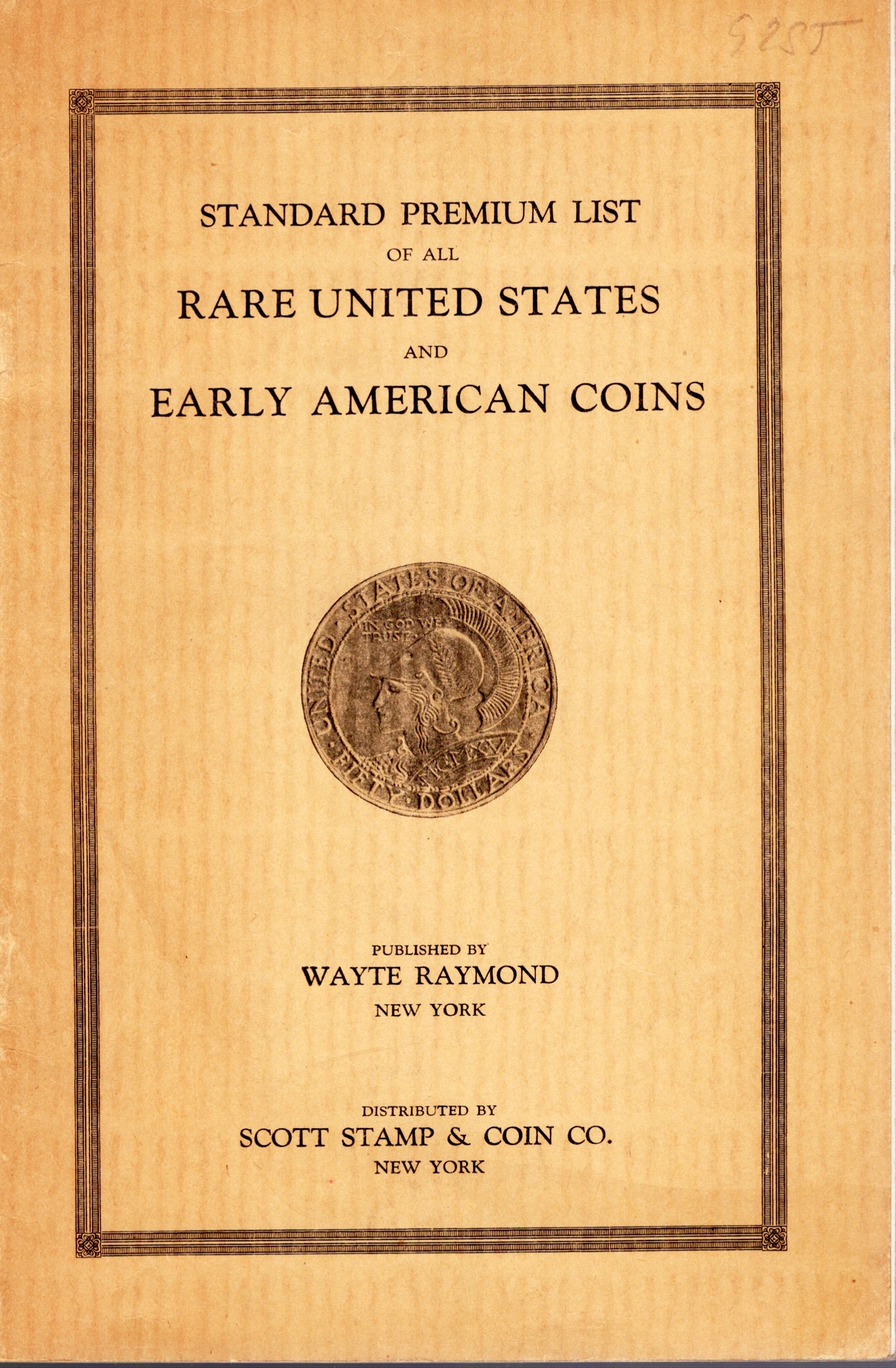 RAYMOND W. - Standard premium list of all rare United State, and early american coins. New York, 1930. pp. 56 con illustrazioni nel testo. brossura editoriale, ottimo stato, raro.