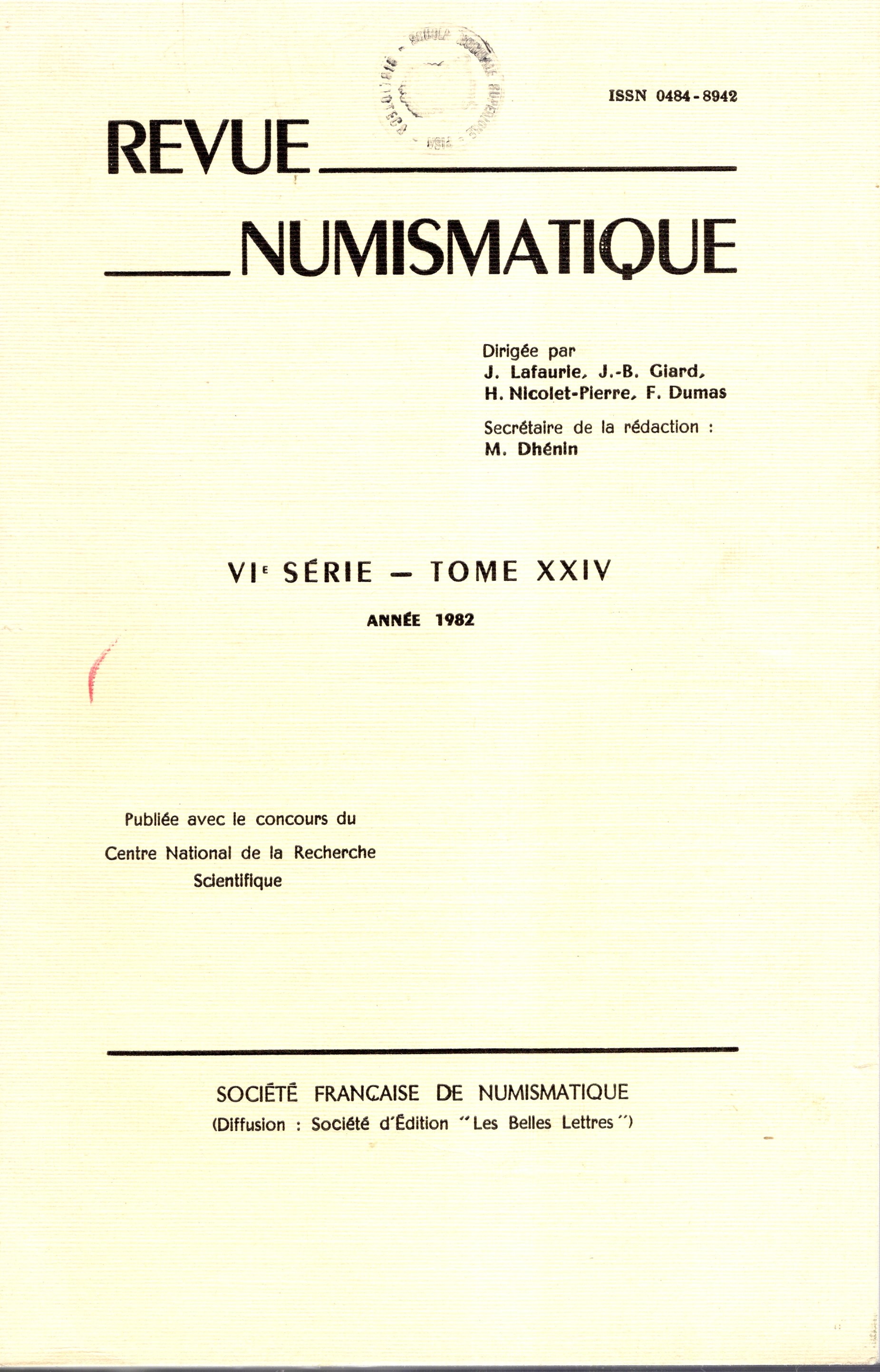 REVUE NUMISMATIQUE. Tome XXIV 1982. Paris, 1982.pp 240, tavole 24. Brossura ed. ottimo stato, ottimo lavori di numismatica antica