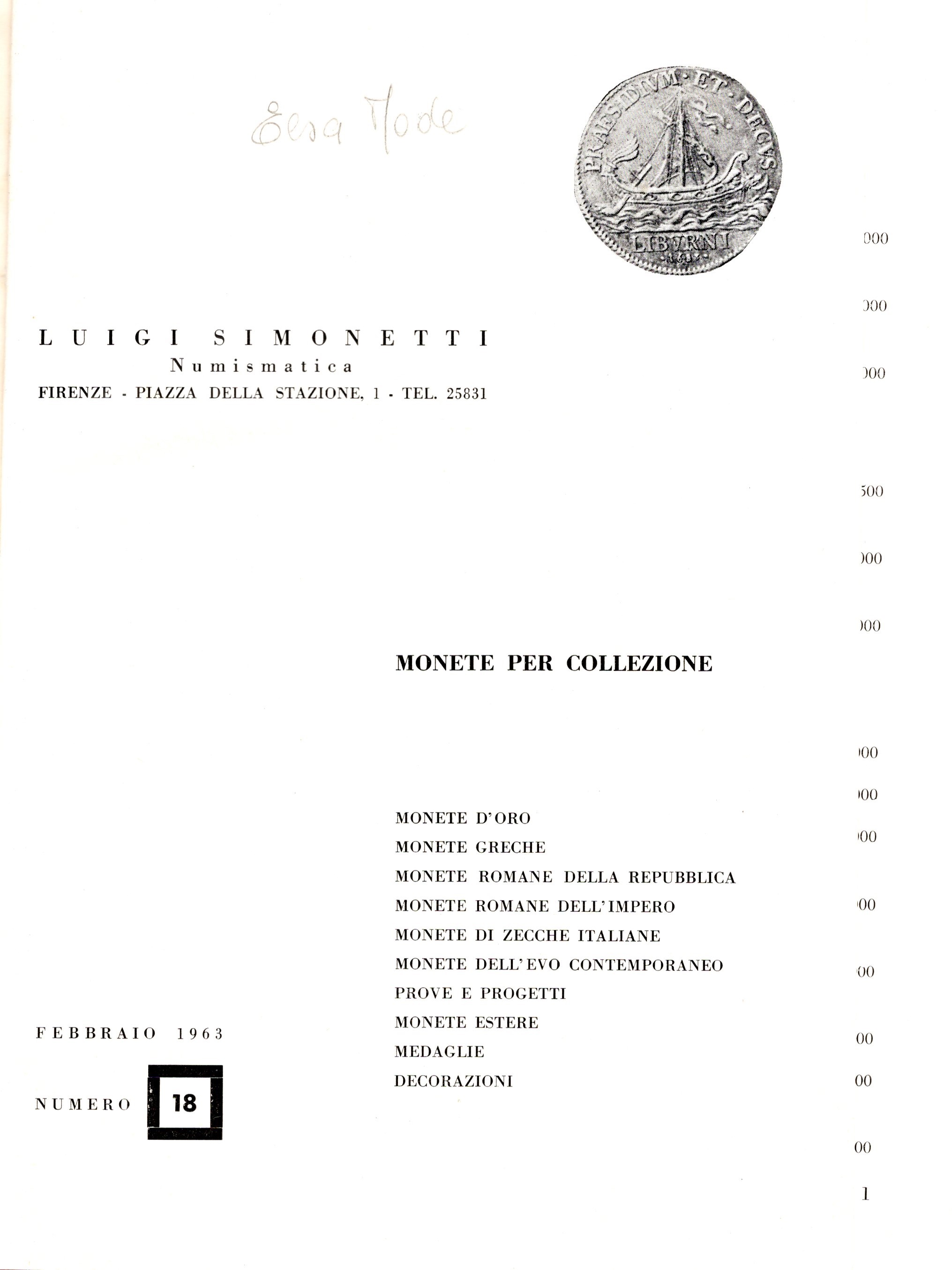 SIMONETTI L. listini a prezzo fisso 1963. dal n. 18 al 24. con tavole. rilegatura rigida tutta tela, buono stato, rari