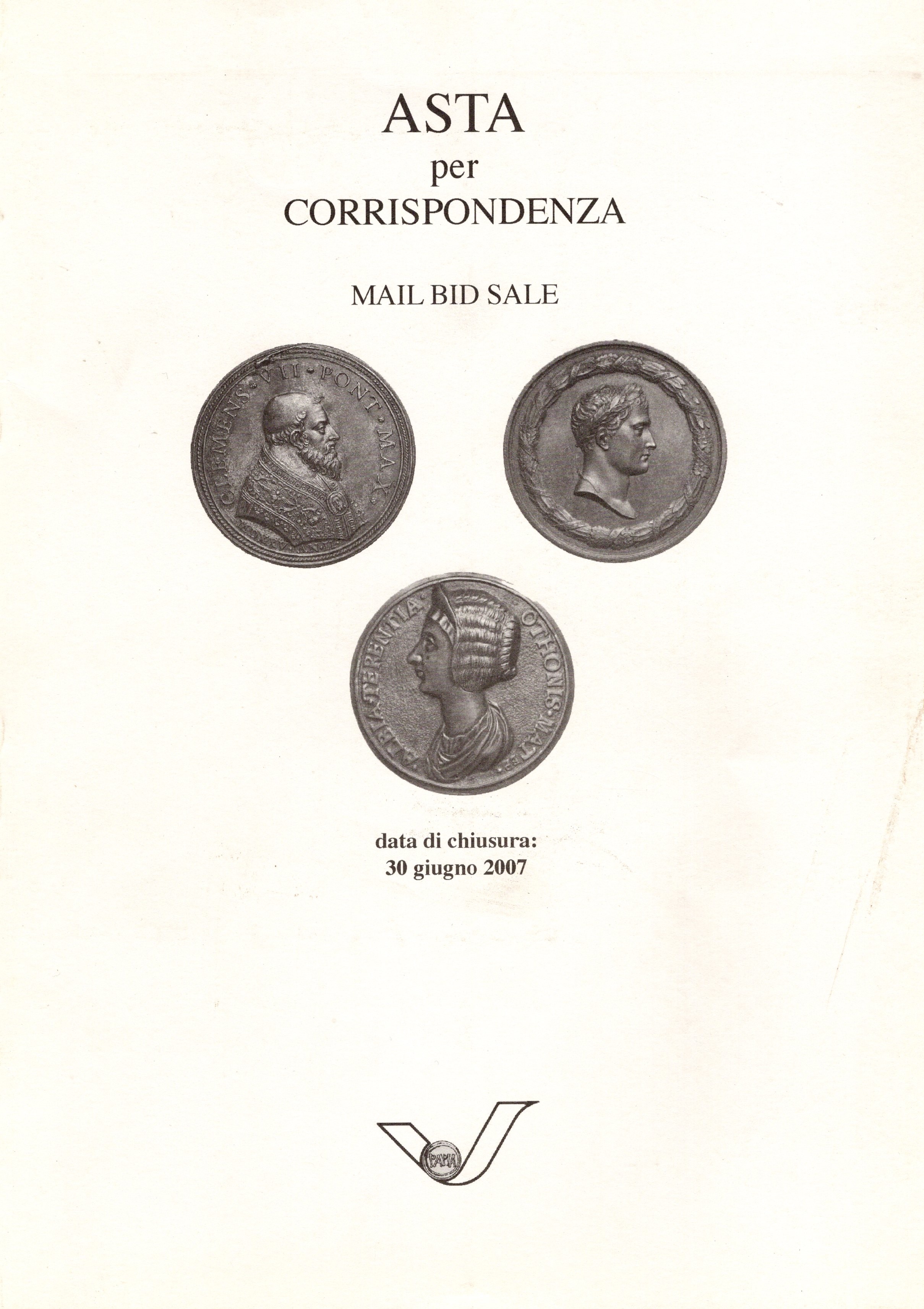VARESI NUMISMATICA. Pavia, 30 - Giugno, 2007. asta per corrispondenza. Monete antiche, medioevali, medaglie e pesi monetali. Pp. non numerate, nn. 1430+26, tavv. 80 a colori. ril. ed ottimo stato, lista prezzi aggiudicazione. Importante raccolta di pesi monetali e di documentazione medaglistica.
