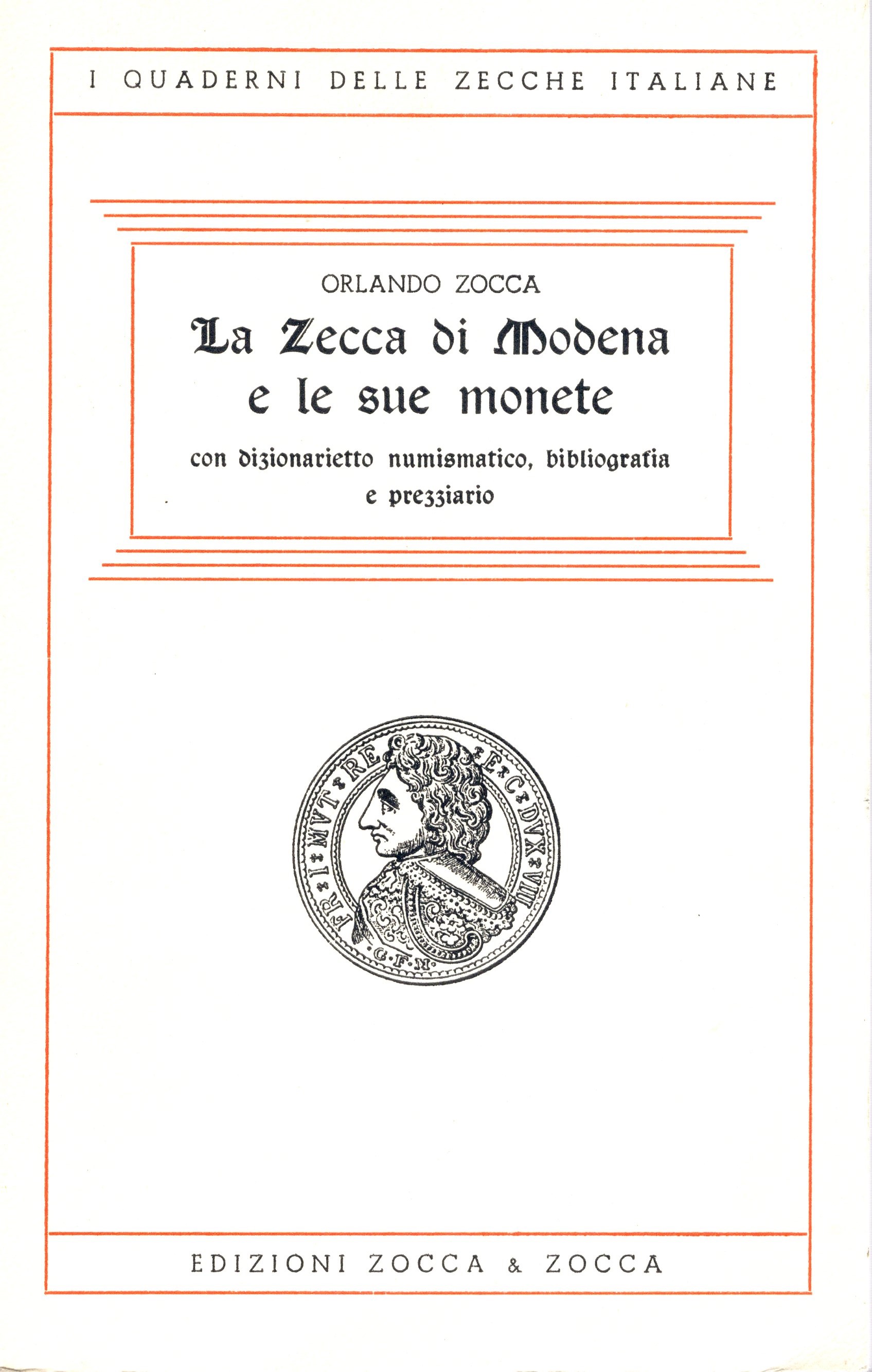 ZOCCA O. - La zecca di Modena e le sue monete. Modena, 1975. pp. 86, illustrazioni nel testo. rilegatura ed. ottimo stato.