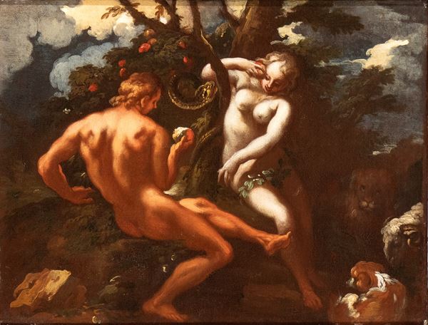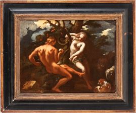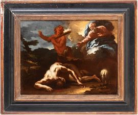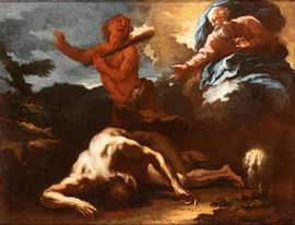 a) Adamo ed Eva; b) Caino e Abele. Coppia di dipinti