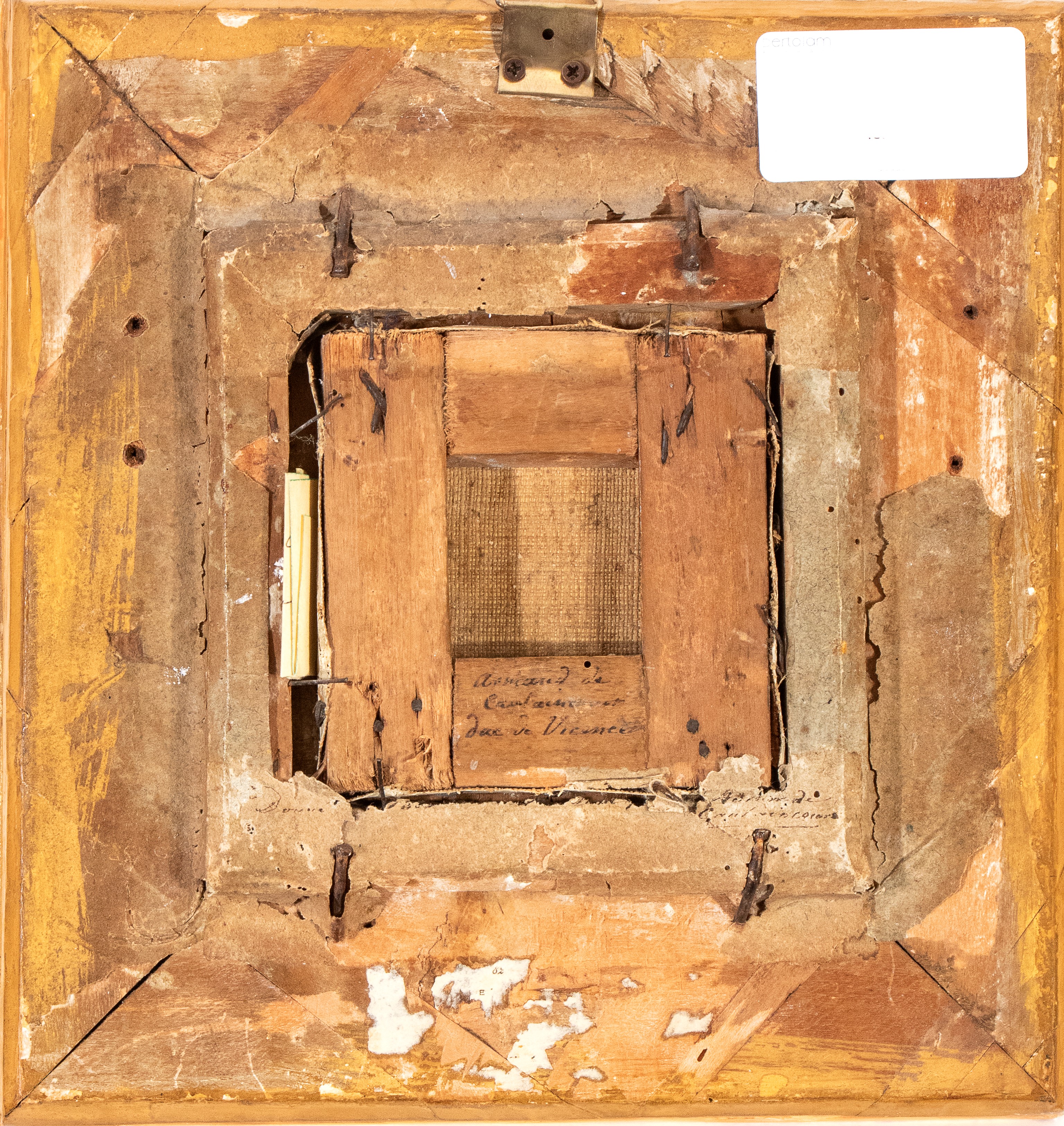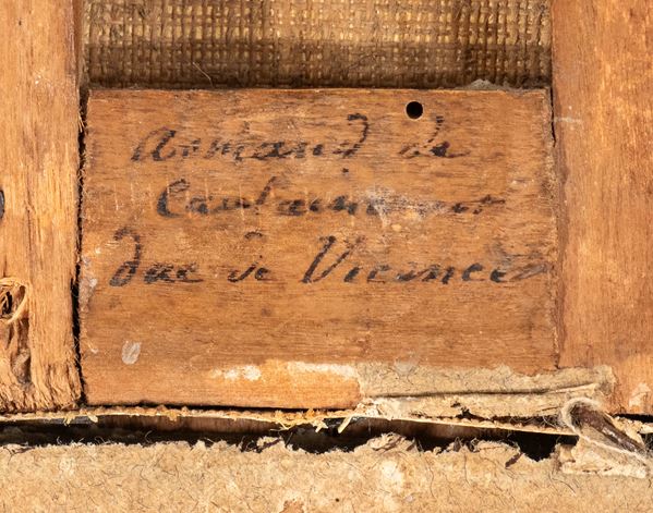 Il telaio originale reca antica iscrizione a pennello che identifica il personaggio effigiato: "ARMAND DE / CAULAINCOURT / DUC DE VICENCES".