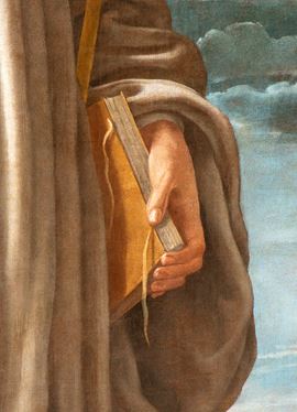 La statuaria presenza del santo, unita a una resa intensamente plastica delle pieghe della cocolla e a un attento naturalismo descrittivo, rivela una solida matrice bresciana. Per qualità formale, impianto compositivo e trattamento luministico, l’opera è attribuibile a Tommaso Bona, pittore attivo nella seconda metà del Cinquecento, certamente formatosi nell’ambito della tradizione di Savoldo e Moretto anche se a tutt'oggi caratterizzato dalla penuria di dati certi sia biografici, sia professionali. La figura isolata, il controllo dei contrasti cromatici e il paesaggio atmosferico rimandano alla fase giovanile dell’artista, ancora legata ai modelli rinascimentali affermati nell'opera dei due grandi maestri locali. Lo confermano le marcate affinità con opere certe del Bona, come la pala del Rosario della parrocchiale di Bovegno, firmata e datata 1579, o la Santa Lucia della parrocchiale di Concesio.
