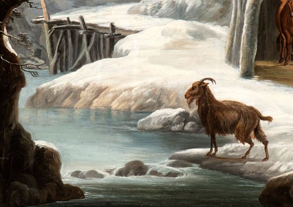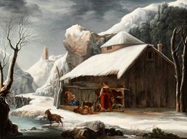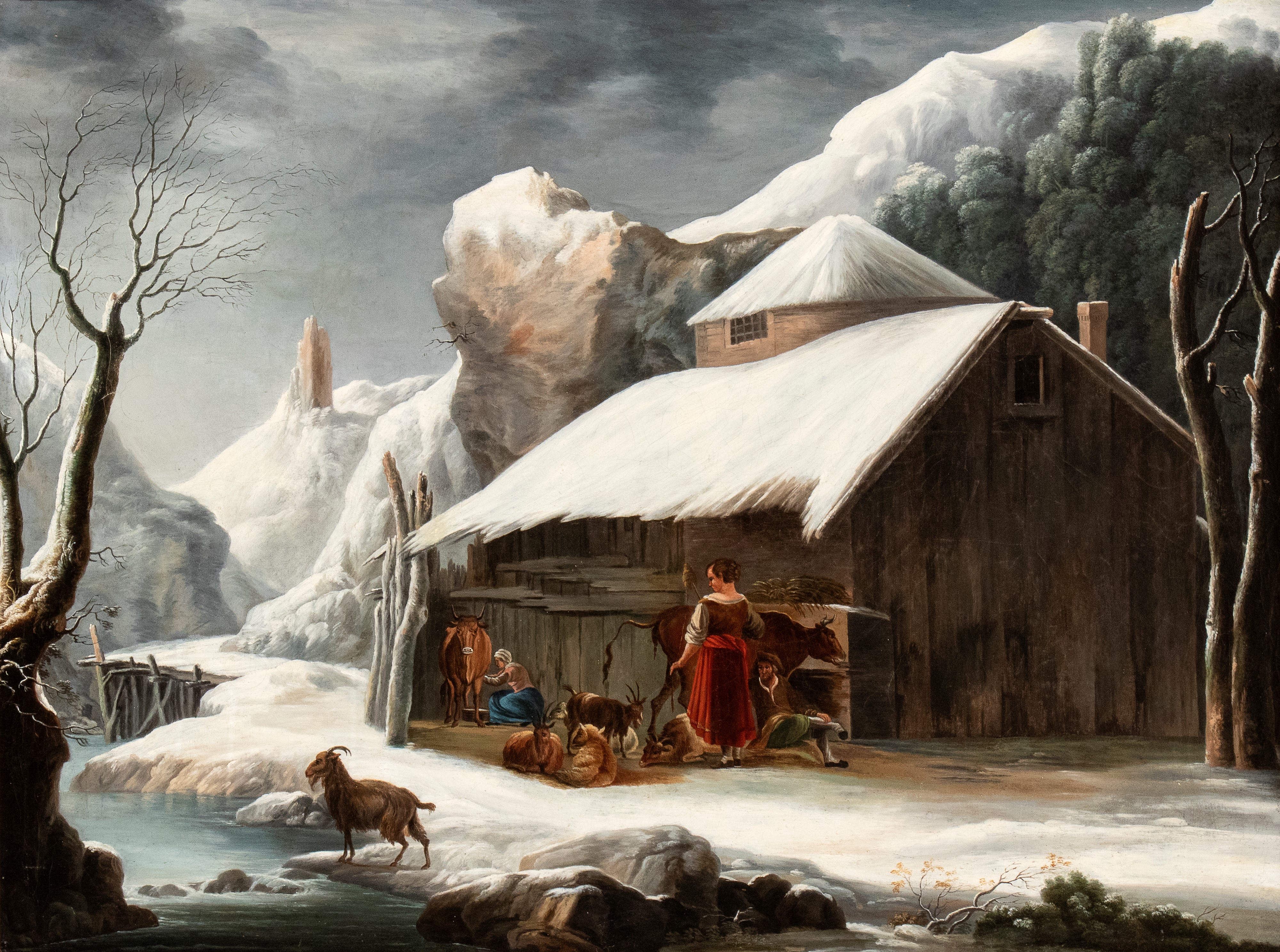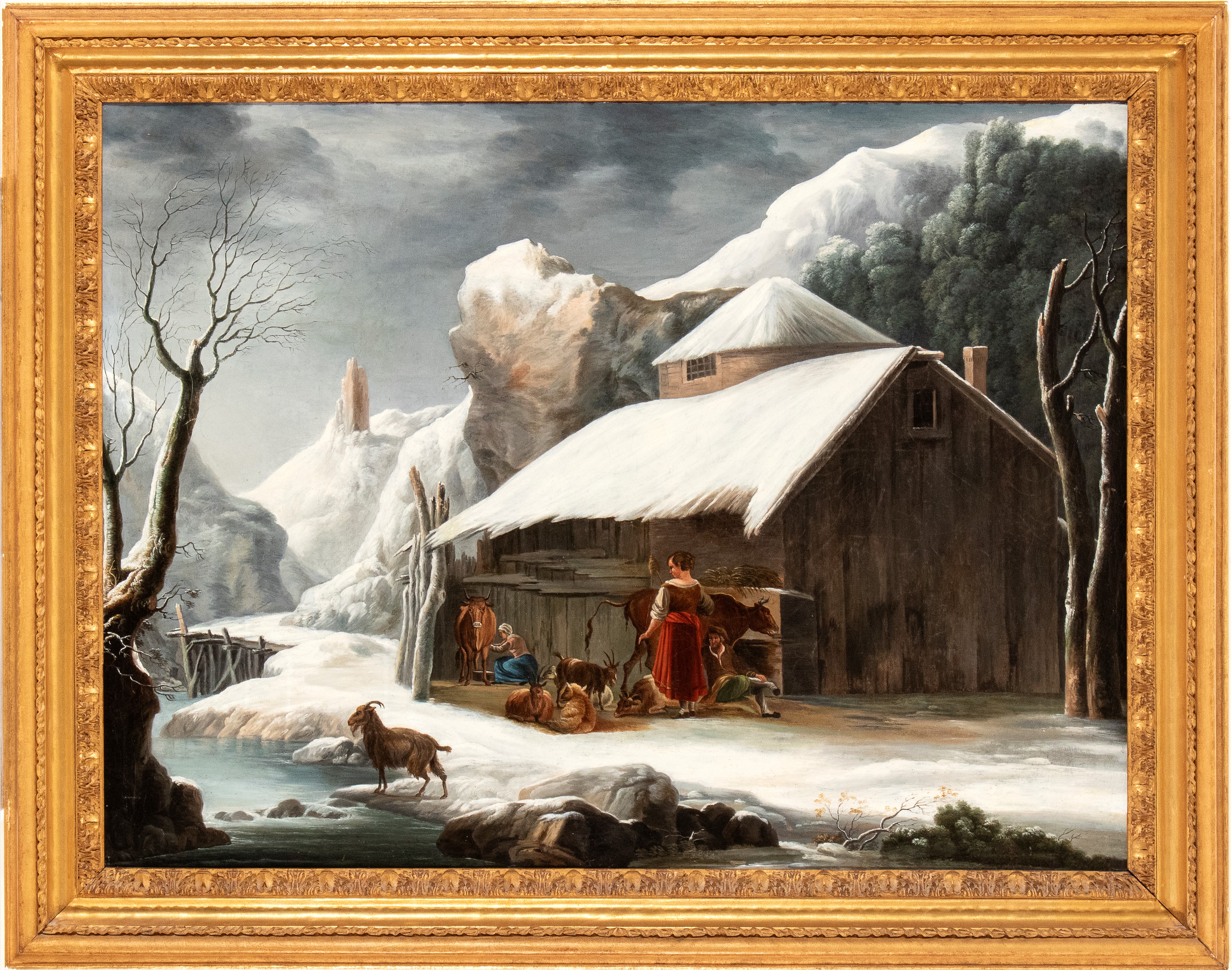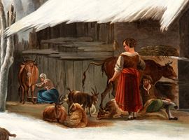 Paesaggio innevato con stalla