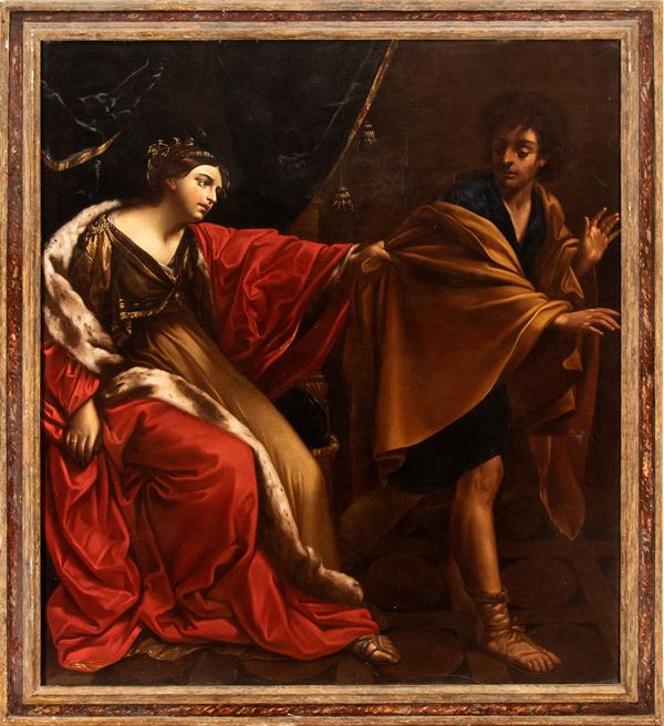 Questa tela superba costituisce una nitida e sontuosa messa in scena della storia narrata nella Genesi (39,7-18) in cui la moglie di Putifarre, ufficiale del Faraone, cerca reiteratamente di sedurre il giovane schiavo ebreo Giuseppe, incontrando sempre il rifiuto di quest'ultimo. In particolare il dipinto si concentra sul momento in cui Giuseppe decide di fuggire dalla donna, la quale però riesce a strappargli il suo mantello.