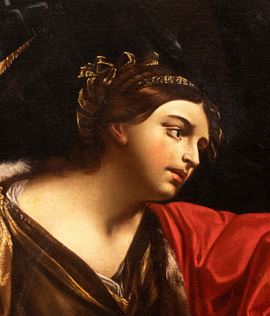 Guido Reni si cimentò in questo soggetto in altre due circostanze, sempre adottando il medesimo impianto compositivo, del resto di grande eleganza e perfetta efficacia narrativa: la tela oggi presso la collezione del visconte di Coke (Holkham Hall, Norfolk) e quella nel Museo Puskin a Mosca, entrambi di misure monumentali analoghe a quelle della nostra versione. L'elevata tenuta qualitativa e l'estrema accuratezza esecutiva confortano il riferimento alla mano di Guido anche per la tela qui in oggetto, sebbene non sia da escludersi il contributo di uno dei migliori allievi del maestro, titolare, com'è noto, di un atelier in cui sono transitati alcuni dei maggiori artisti attivi in Italia nella prima metà del Seicento. In particolare, merita di essere presa in considerazione l'opinione che Erich Schleier comunicò direttamente alla proprietà secondo la quale, accanto a quella prevalente di Guido, si potesse rilevare nel dipinto anche la mano di Giovanni Giacomo Sementi.