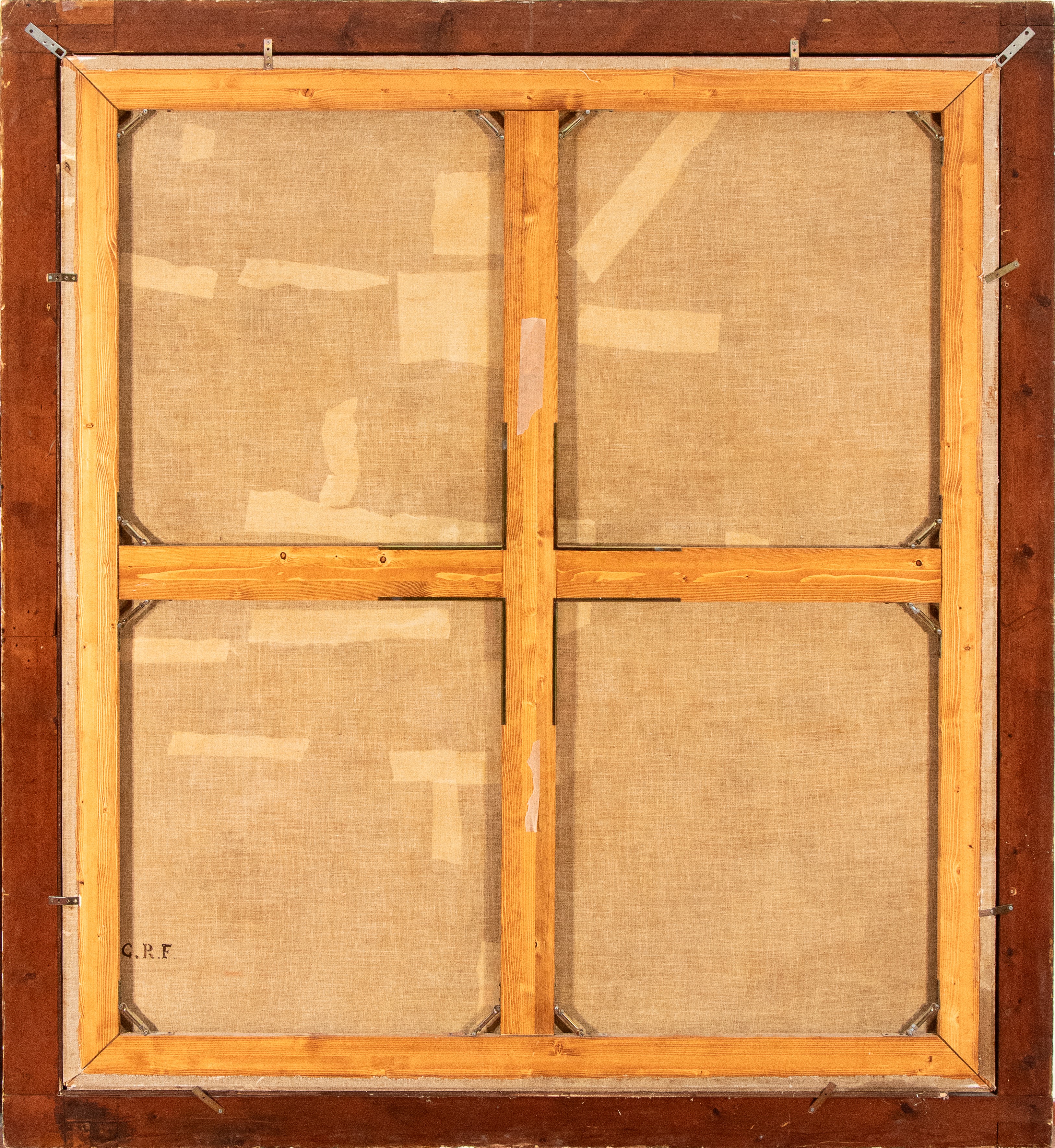 Al retro la tela di rifodero reca iscrizione a pennello: "GRF".